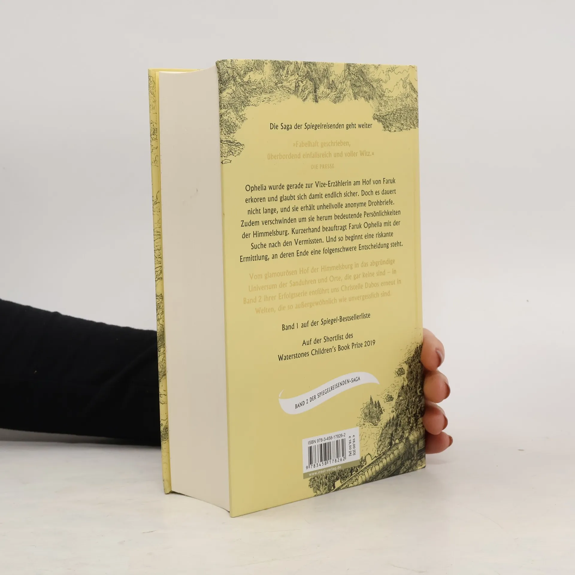 Ophelia wurde gerade zur Vize-Erzählerin am Hof von Faruk erkoren und glaubt sich damit endlich sicher. Doch es dauert nicht lange, und sie erhält unheilvolle anonyme Drohbriefe: Wenn sie ihre Hochzeit mit Thorn nicht absagt, wird ihr Übles widerfahren. Und damit scheint sie nicht die Einzige zu sein: Um sie herum verschwinden bedeutende Persönlichkeiten der Himmelsburg. Kurzerhand beauftragt Faruk Ophelia mit der Suche nach den Vermissten. Und so beginnt eine riskante Ermittlung, bei der es Ophelia nicht nur mit manipulierten Sanduhren, sondern auch mit gefährlichen Illusionen und zwielichtigen Gestalten zu tun bekommt. Am Ende steht eine folgenschwere Entscheidung. Vom glamourösen Hof der Himmelsburg in das abgründige Universum der Sanduhren und Orte, die gar keine sind – um ihr Leben sowie das ihrer Familie zu retten, muss Ophelia an ihre Grenzen gehen. Und das in einer Welt, in der sie so gut wie niemandem trauen kann, womöglich nicht einmal ihrem zukünftigen Ehemann Thorn?