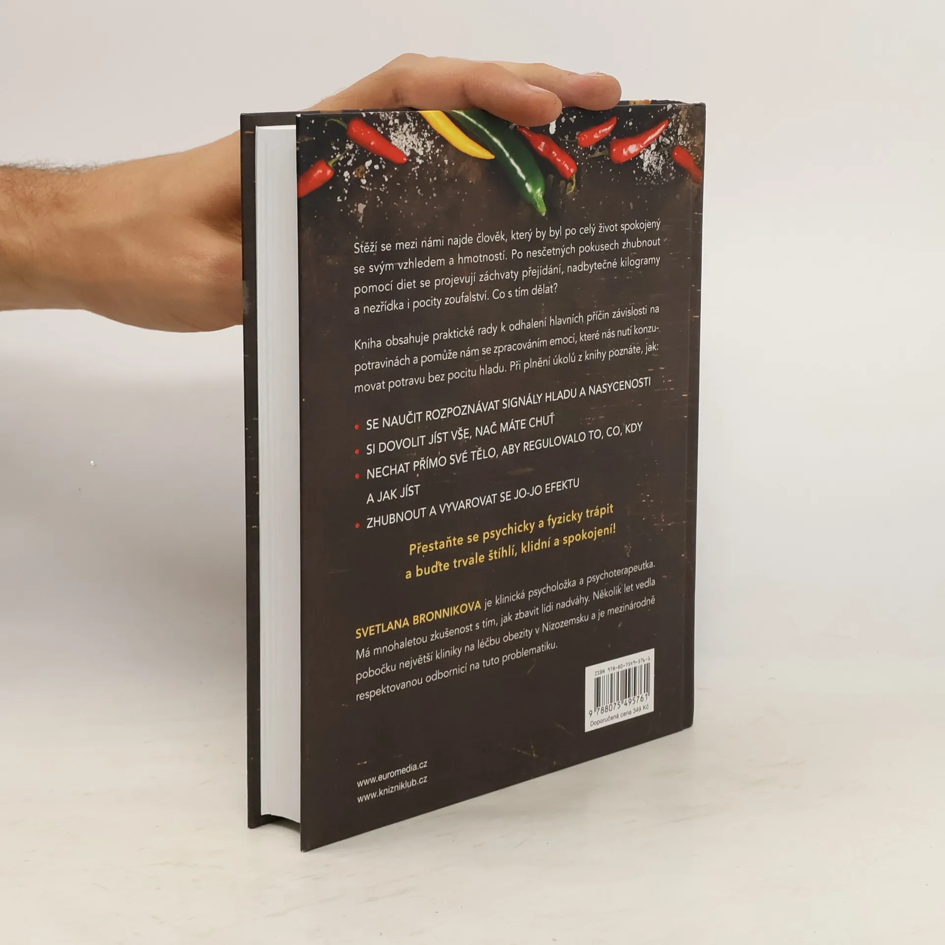 Stěží se mezi námi najde někdo, kdo by byl vždy spokojený se svým vzhledem a hmotností. Příčina nadváhy zpravidla tkví v nezpracovaných emocích, které nás ponoukají jíst bez pocitu hladu. Co s tím můžeme dělat? Kniha obsahuje praktické nástroje na překonání závislosti na jídle tak, abyste si mohli dovolit jíst vše, na co máte chuť, naučili se vnímat signály hladu a nasycení a přitom zhubli a znovu již nepřibrali na váze. Postupným plněním úkolů na stránkách této knihy se dokážete zbavit zátěže své tělesné hmotnosti a problémů. Plňte konkrétní plán, který vám předkládá kvalifikovaná odbornice v oblasti stravování, a zhubněte natrvalo.