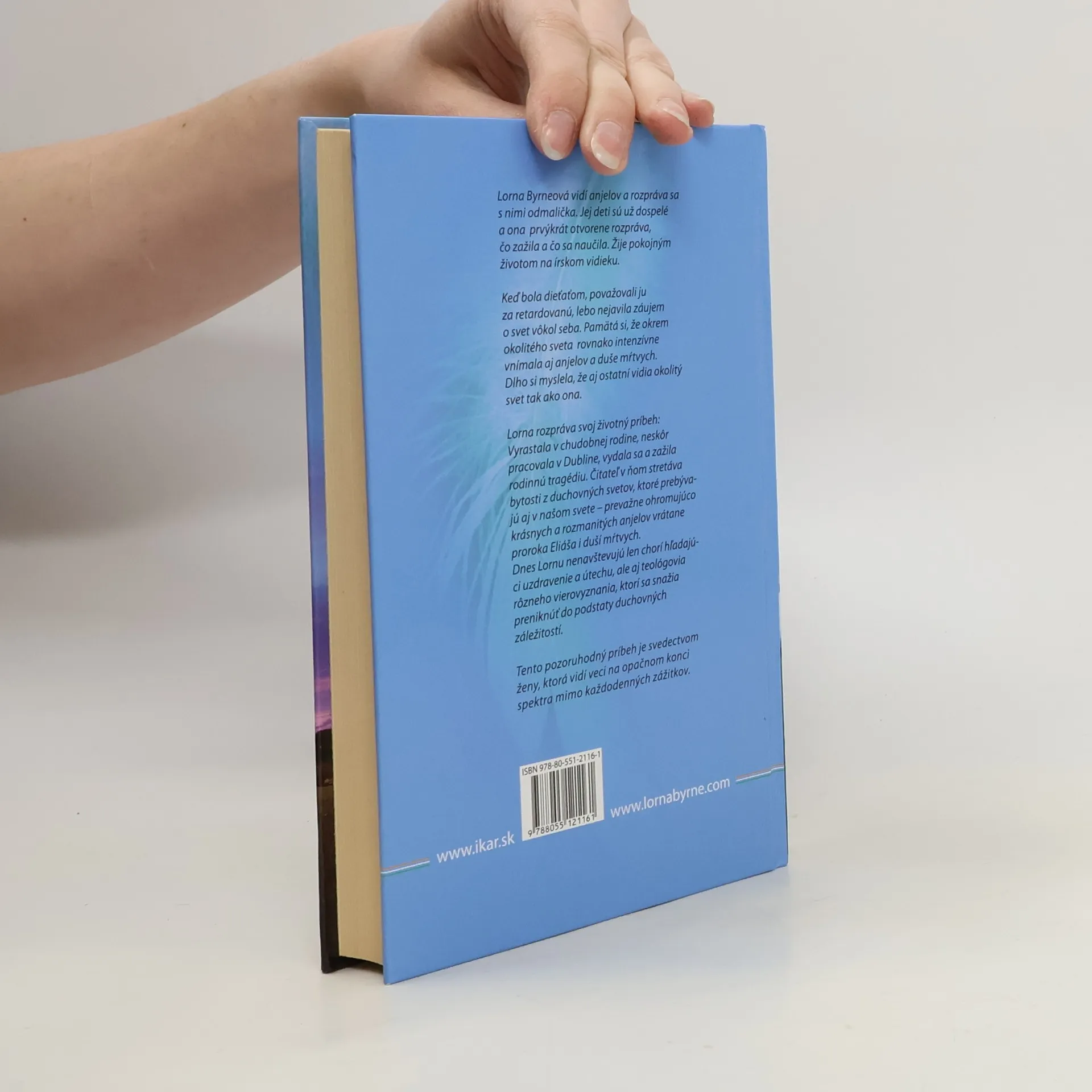 Lorna Byrneová vidí anjelov a rozpráva sa s nimi odmalička. Jej deti sú už dospelé a ona po prvýkrát otvorene rozpráva, čo videla a čo sa naučila. Žije pokojným životom na írskom vidieku. Keď bola dieťaťom, považovali ju za retardovanú, lebo nejavila záujem o svet vôkol seba. Pamätá si, že okrem okolitého sveta vnímala rovnako intenzívne aj anjelov a duše mŕtvych. Dlho si myslela, že aj ostatní vnímajú okolitý svet tak ako ona. Lorna rozpráva svoj životný príbeh: Vyrastala v chudobnej rodine, neskôr pracovala v Dubline, vydala sa a zažila rodinnú tragédiu. Čitateľ v ňom stretáva bytosti z duchovných svetov, ktoré prebývajú aj v našom svete – prevažne ohromujúco krásnych a rozmanitých anjelov vrátane proroka Eliáša i duší mŕtvych. Dnes Lornu nenavštevujú len chorí hľadajúci uzdravenie a útechu, ale aj teológovia rôzneho vierovyznania, ktorí sa snažia preniknúť do podstaty duchovných záležitostí. Tento pozoruhodný príbeh je svedectvom ženy, ktorá vidí veci na opačnom konci spektra mimo každodenných zážitkov.