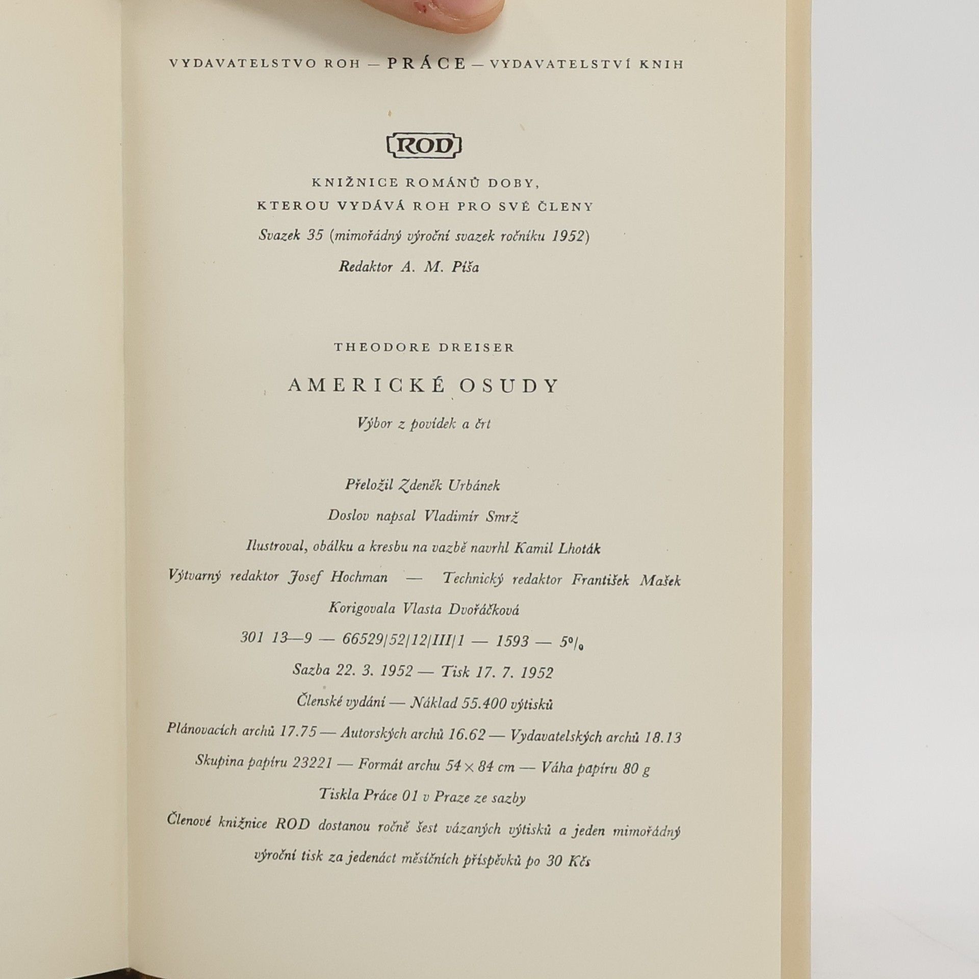 Z díla největšího amerického pokrokového spisovatele 20. století, z něhož byly u nás často překládány pouze romány, vyšel výbor deseti povídek, jichž spisovatel napsal celkem 5 svazků a které H.Fast hodnotí jako "vrchol celé americké povídkářské tvorby našeho století vůbec". Dreiserovy příběhy spojuje ústřední myšlenka: ukázat, jak těžko se žije prostému člověku za kapitalistické společnosti, jak se musí rvát o holou existenci, jak je rdousena, znetvořována a ubíjena lidská individualita. Příběhy ukazují, kolik zmařených životů plodí kapitalismus, jak znemožňuje rozvoj nadání a schopností lidí, jak je stravuje neřešitelnými rozpory a problémy, z nichž není za tohoto společenského systému východiska.