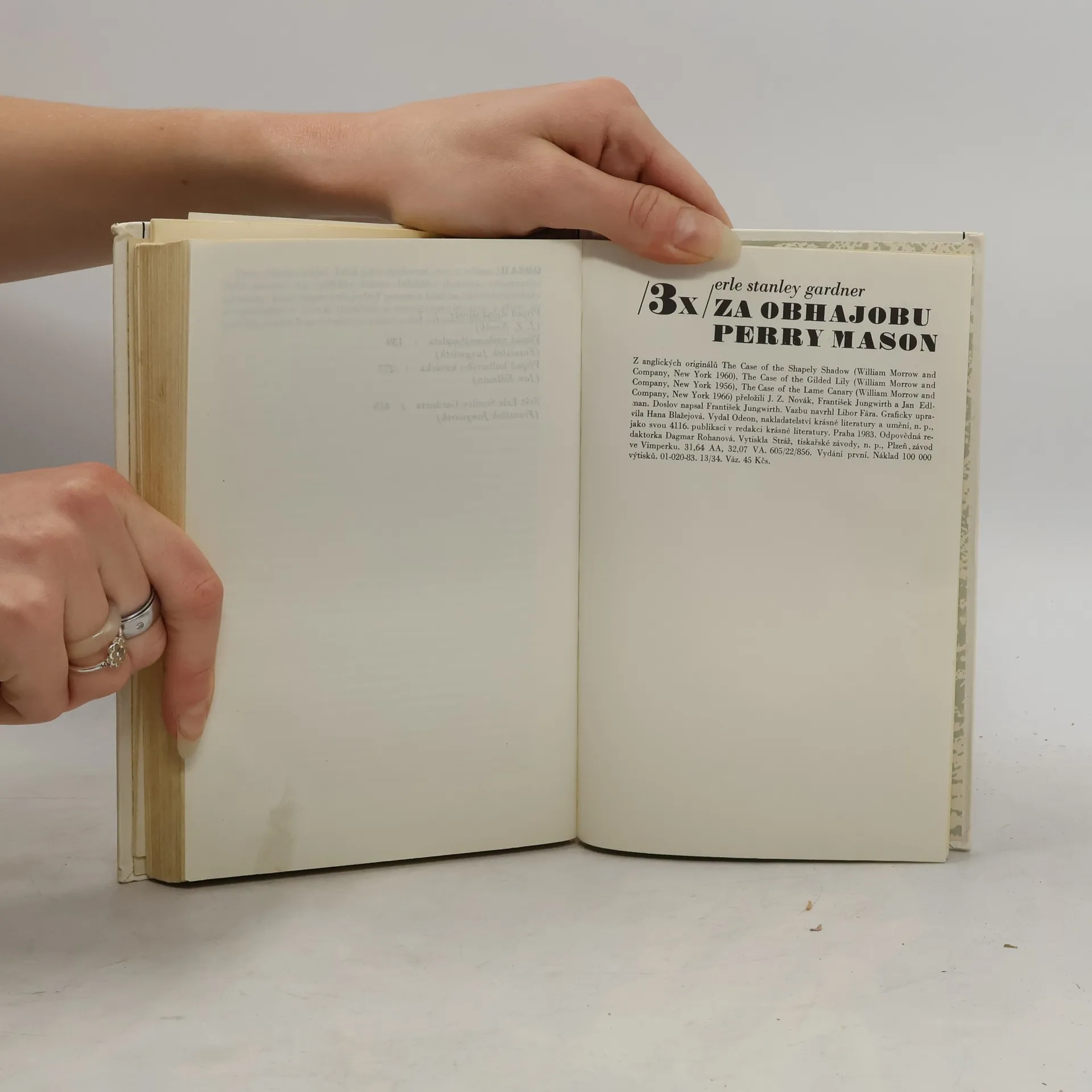 Tři detektivní příběhy: Případ sličné siluety, Případ pozlaceného zlata a Případ kulhavého kanárka. Doslov napsal František Jungwirth: Svět E. S. Gardnera.