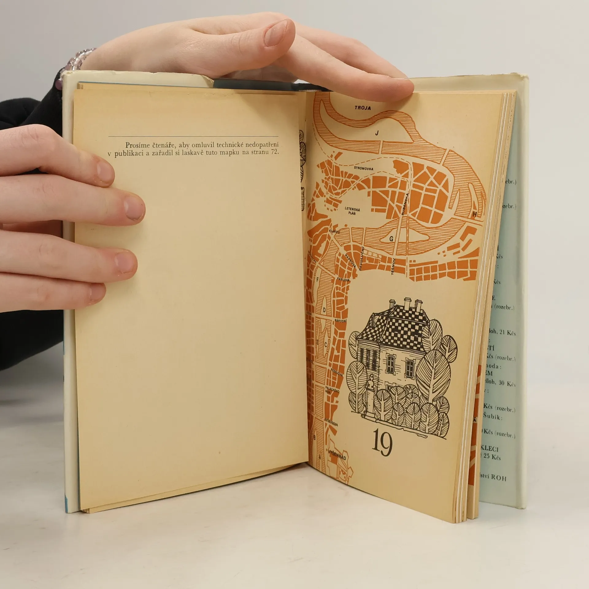 První autorova kniha o Praze, zpracovaná pod existenčním tlakem, protože jak Ravik tak spoluautor Miloslav Jenšík byli ve výpovědní lhůtě. Na rozdíl od jiných průvodců (např. E. Pocheho) zvolil Ravik nikoli cestu ulicemi dům od domu, ale členění Prahy podle architektonických útvarů. Tak vznikla Praha domů, paláců, mostů, věží, chrámů, zahrad, zatímco spolupracovník Jenšík se zabýval Prahou válečnou, sportovní, hospodskou, i pražským slovníčkem naučným. Kniha je kuriozní i jednou pikanterií: autorovo jméno muselo být redakcí staženo, protože Ravik měl již zákaz publikování. Na hřbetě plátěné vázby však Ravik zůstal, což se neobešlo bez odezvy.