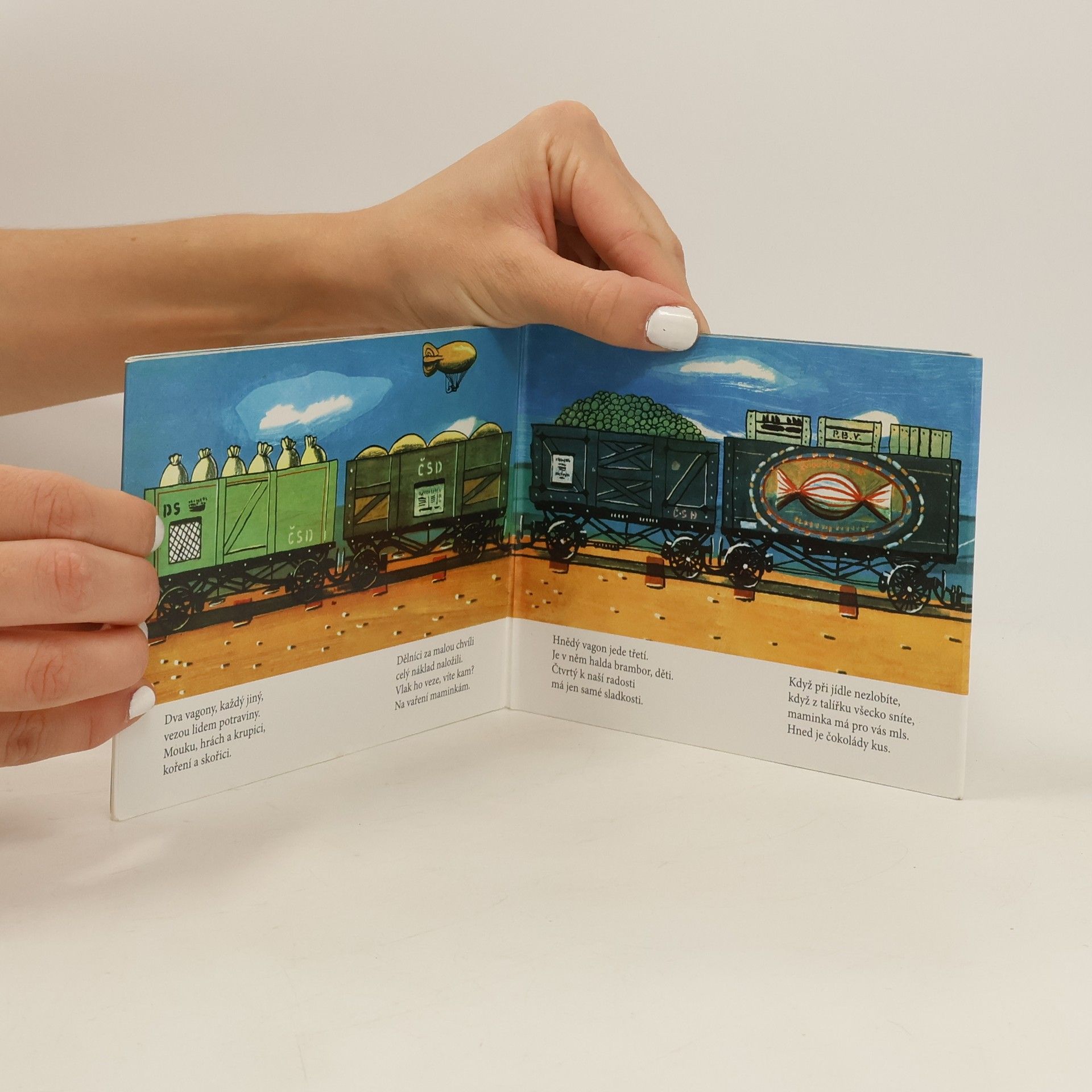 Po kolejích jede vláček, rychlý vláček – náklaďáček. Od nádraží k nádraží různé zboží rozváží. Leporelo s dlouhým nákladním vlakem Kamila Lhotáka zaujme každého malého kluka. A protože jde o vlak s parní lokomotivou, určitě zaujme i tatínky, kteří svým potomkům jistě rádi vysvětlí, že dnes už takový vlak uvidí na kolejích jen výjimečně, protože technika se od prvního vydání této knížky (rok 1954!) velmi výrazně zdokonalila a zmodernizovala. Obrázky doprovázejí verše Josefa Hiršala.