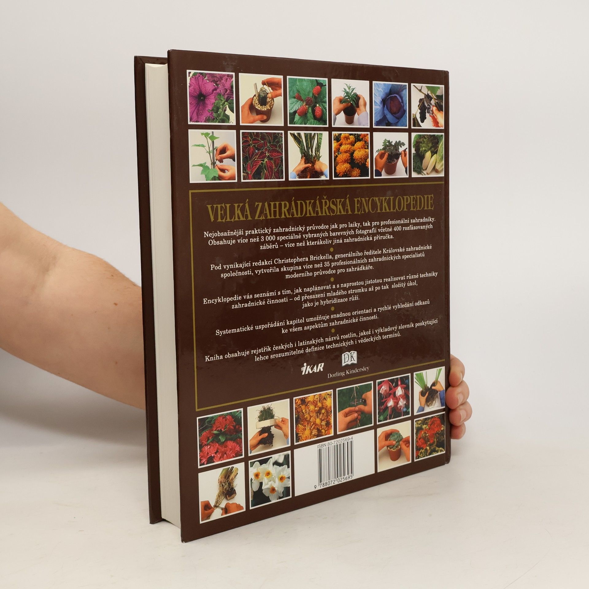 Praktický průvodce zahrádkářskými technikami, navrhováním a údržbou výsadeb i pěstováním květin, okrasných rostlin, ovoce a zeleniny.Nejobsažnější praktický zahradnický průvodce pro laiky i profesionální zahradníky obsahuje více než 3000 barevných fotografií včetně 400 rozfázovaných záběrů. Encyklopedie vás seznámí s tím, jak naplánovat a realizovat různé techniky zahradnické činnosti - od přesazení mladého stromku až třeba po složitou hybridizaci růží. Systematické uspořádání kapitol usnadňuje orientaci a rychlé vyhledávání odkazů ke všem aspektům zahradnické činnosti. Kniha obsahuje rejstřík českých i latinských názvů rostlin, jakož i výkladových slovník poskytující srozumitelné definice technických a vědeckých termínů. Chybné ISBN 80-7202569-4, správné ISBN je 80-7202-569-4. (zdroj: Databáze Národní knihovny ČR)... celý text