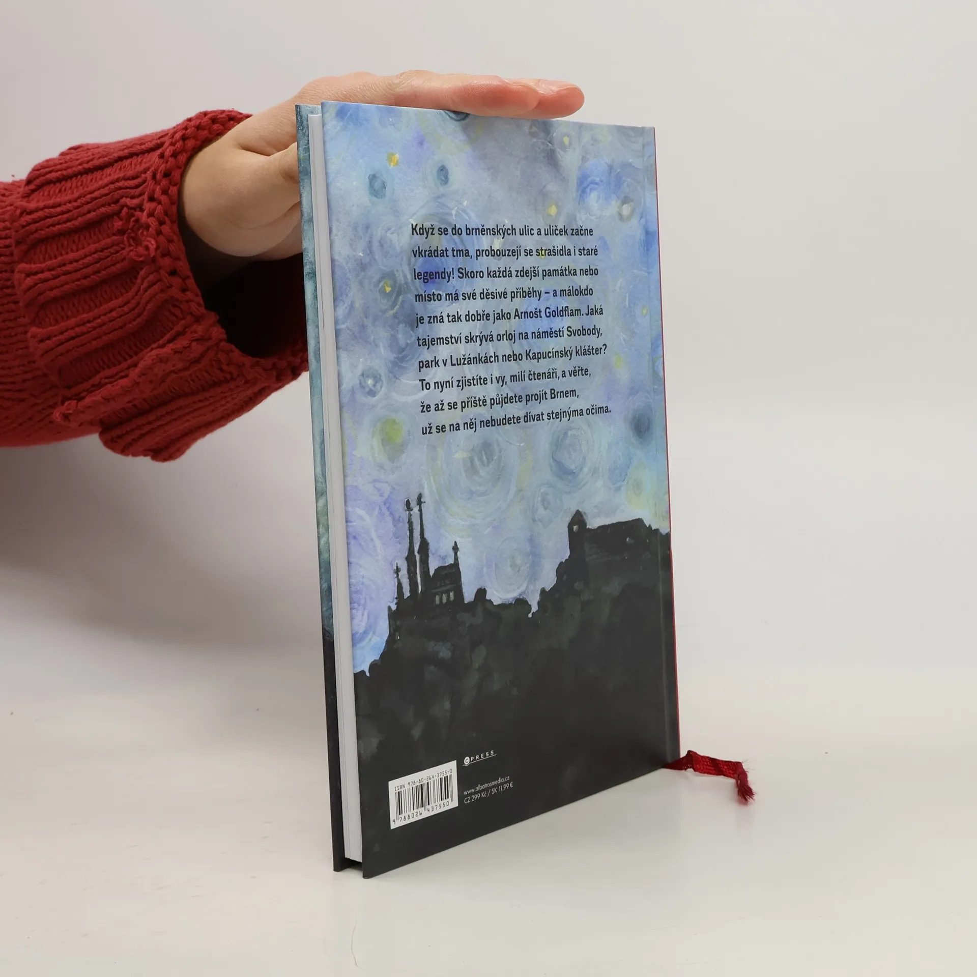 Husí kůže zaručena! Patnáct strašidelných příběhů pro děti i rodiče. Když se do brněnských ulic a uliček začne vkrádat tma, probouzejí se strašidla i staré legendy! Skoro každá zdejší památka nebo místo má své děsivé příběhy – a málokdo je zná tak dobře jako Arnošt Goldflam. Jaká tajemství skrývá orloj na náměstí Svobody, park v Lužánkách nebo Kapucínský klášter? To nyní zjistíte i vy, milí čtenáři, a věřte, že až se příště půjdete projít Brnem, už se na něj nebudete dívat stejnýma očima. Moji milí čtenáři, děti a rodiče, když jsem ještě bydlel v Brně a hlavně když jsem byl ještě děcko, býval jsem velký snílek. Představoval jsem si různé dobrodružné a strašidelné historie a rodičům jsem tvrdil, že jsem to doopravdy zažil, a taky jsem si to mnohdy myslel. V téhle knížce jsem si na to všechno vzpomněl a všechny ty příhody jsem pro Vás sepsal. Srdečně Váš Arnošt Goldflam