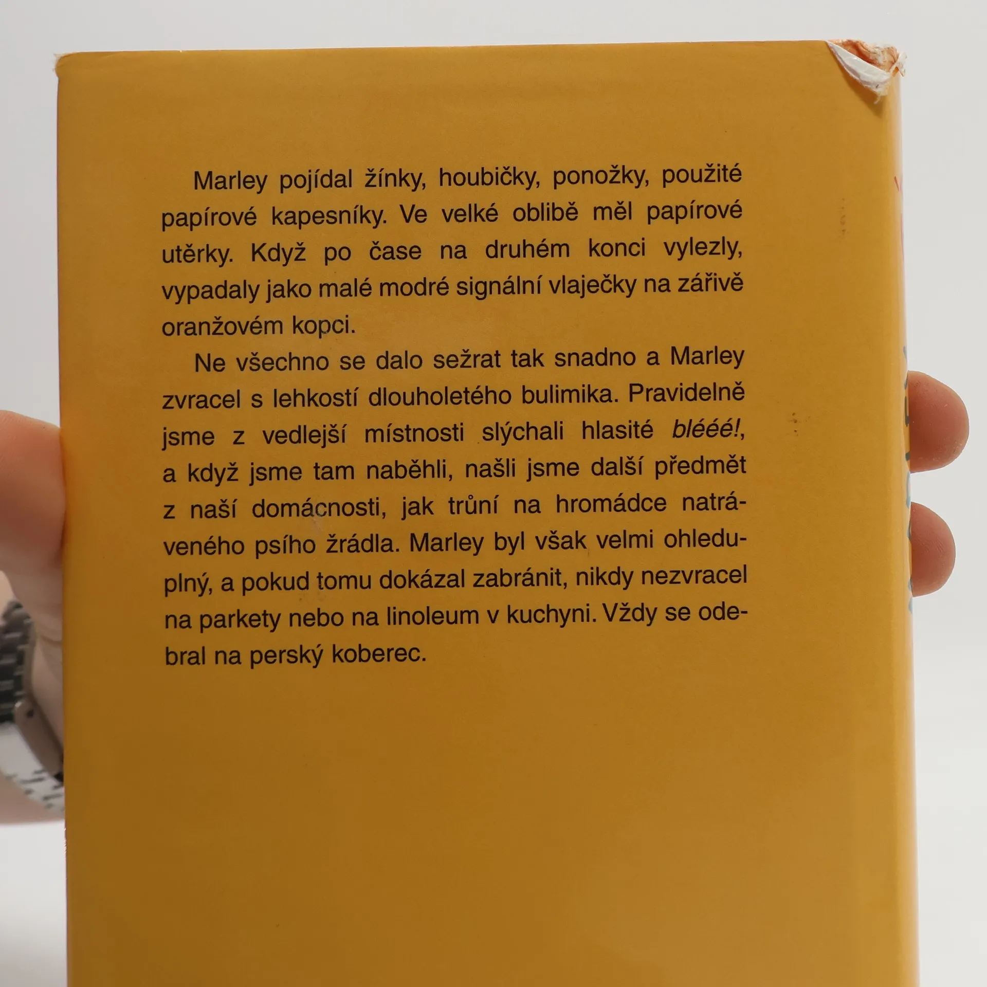 Co to je za rodinu bez věrného, dobře vychovaného klidného psa? Labrador Marley má však k takovému psímu hrdinovi daleko. Když si ho John s Jenny přivedou domů, nestačí se divit. Kde je ten mírný, inteligentní a přizpůsobivý pejsek, kterého slibovaly kynologické příručky? Už první jízda autem se promění v malé dobrodružství a překvapení pokračují: Kdo to roztahal po bytě celou roli toaletního papíru? Kam se poděly ubrousky, papírové kapesníky, účtenky, korkové zátky, svorky na papír a šachové figurky? Proč má židle najednou jen tři nohy? Marley kosí ocasem sklenice a zarámované fotografie, ohryzává nábytek, vyhrabává květiny na zahradě, leze do odpadkového koše, skáče na lidi a loudí u stolu, hraje si na potápěče v misce s vodou, škrtí se na vodítku, čmuchá, funí, slintá a očurává kdeco a kdekoho. A navíc roste jako z vody. Přesto na něj John s Jenny nedají dopustit a s velkou láskou i pochopením líčí Marleyho veselé kousky i dojemné chvíle z jeho stáří a nemoci. Život s „nejhorším psem na světě“ totiž není žádná nuda.