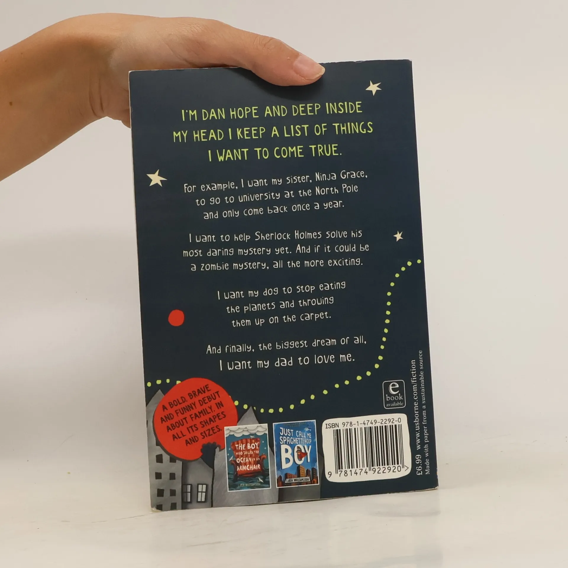 FAMILY & HOME STORIES (CHILDREN'S / TEENAGE). Dan Hope has a list of ten wishes. No. 1 is for a new sister. No. 6 is for a swimming pool full of Coco Pops. And no. 10 is for a dad who loves him. Since Dad ran off with the chip-shop lady, Dan's life has gone a bit strange - so he has to get Dad back. But as one genius plan after another goes pear-shaped, will his biggest wish ever come true?. Ages 9+