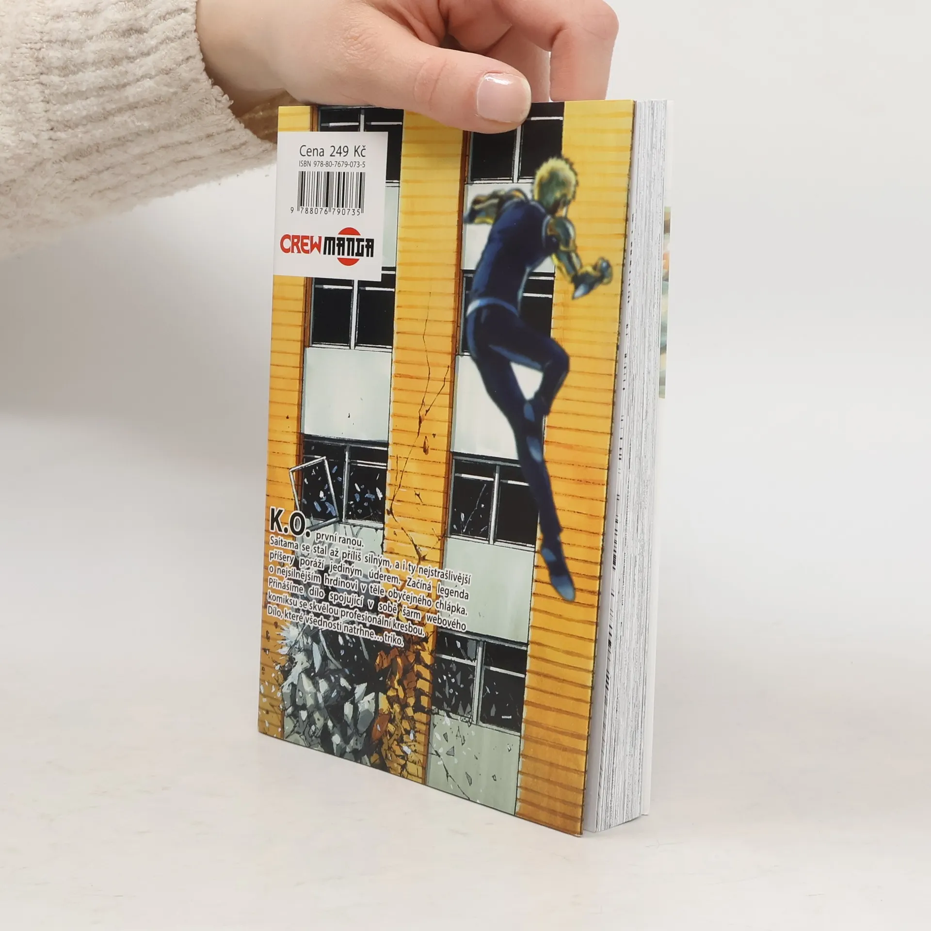 K.O. první ranou. Saitama se stal až příliš silným, a i ty nejstrašlivější příšery poráží jediným úderem. Začíná legenda o nejsilnějším hrdinovi v těle obyčejného chlápka. Přinášíme dílo spojující v sobě šarm webového komiksu se skvělou profesionální kresbou. Dílo, které všednosti natrhne… triko.
