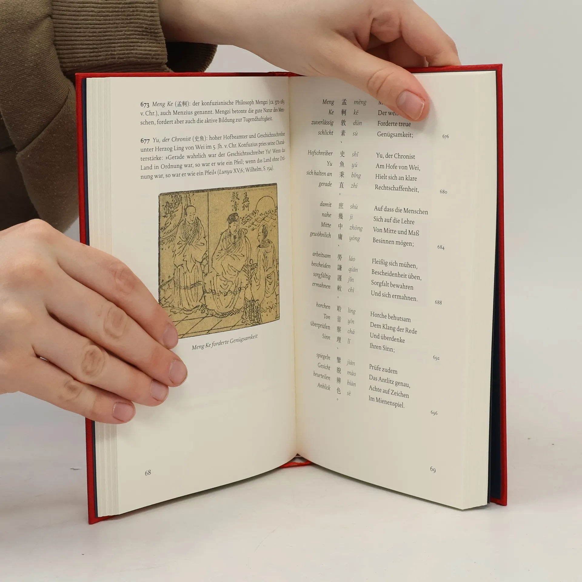 Zusammengestellt im 6. Jahrhundert am Hof des Kaisers Wu, diente der 1000-Zeichen-Klassiker über Jahrhunderte als Lehrbuch in China. Es wurde gemeinsam rezitiert und auswendig gelernt, und jeder Schüler musste es beherrschen. Die Zeichen sind mehr als nur Schriftzeichen; sie wecken Vorstellungen, Bildungsinhalte und ethische Maximen der alten Meister wie Konfuzius und Laozi. Sie vermitteln den gesamten Kosmos chinesischen Weltwissens und Kultur bis in die heutige Zeit. Das Werk beginnt mit Himmel und Erde, behandelt die Jahreszeiten, Naturphänomene, Pflanzen, Tiere und die Geschichte der Menschen, gefolgt von Lebensregeln wie: „Was mangelhaft war, musst du fortan vermeiden.“ Vier Zeichen ergeben einen Sinnzusammenhang, acht ein kleines Gedicht. Diese deutsche Übersetzung erscheint erstmals und erfordert eine intime Kenntnis der chinesischen Vorstellungswelt. Eva Lüdi Kong hat jedes Zeichen in einen kurzen deutschen Vers übertragen. In ihrem ausführlichen Nachwort erläutert sie die Entstehung und Bedeutung dieses Klassikers.