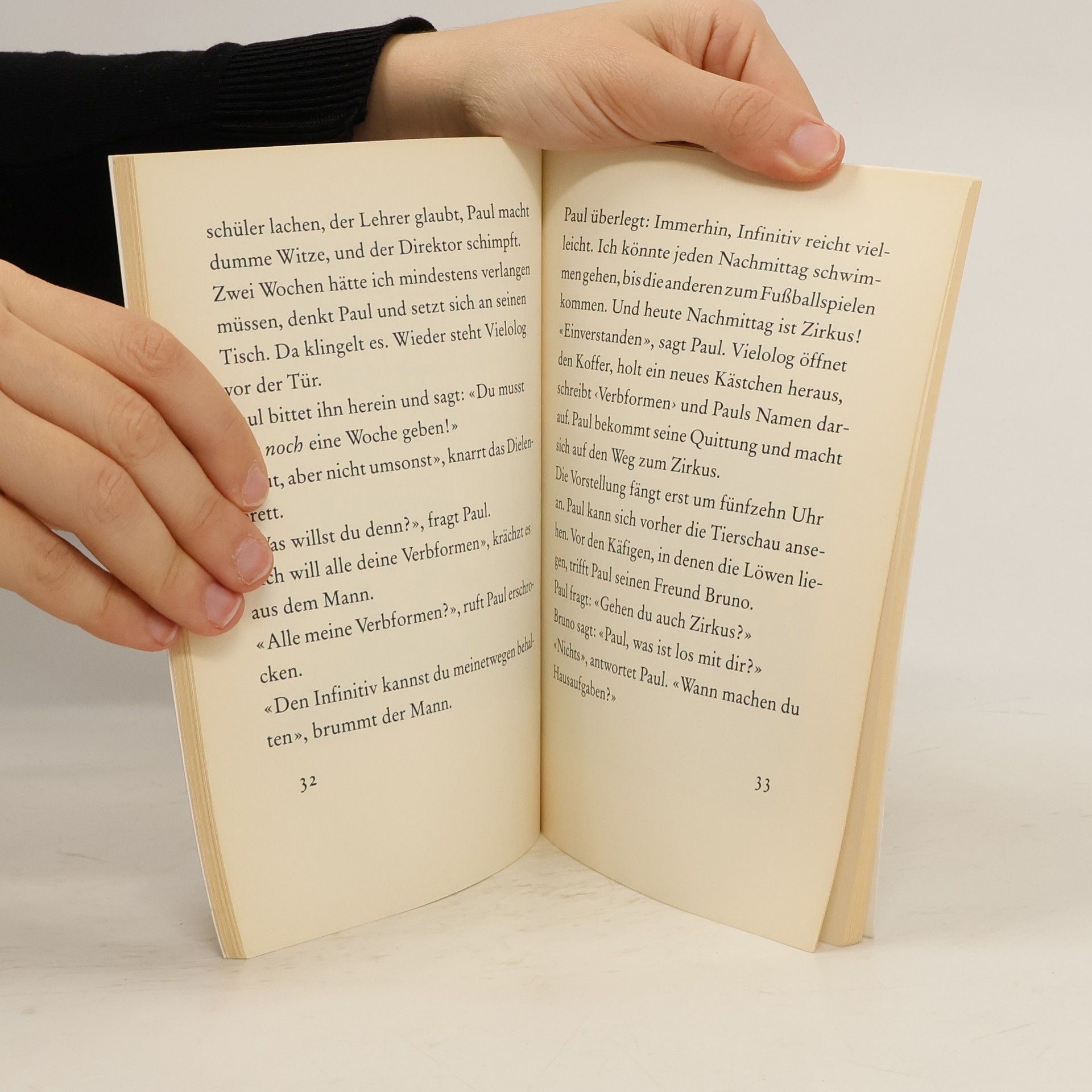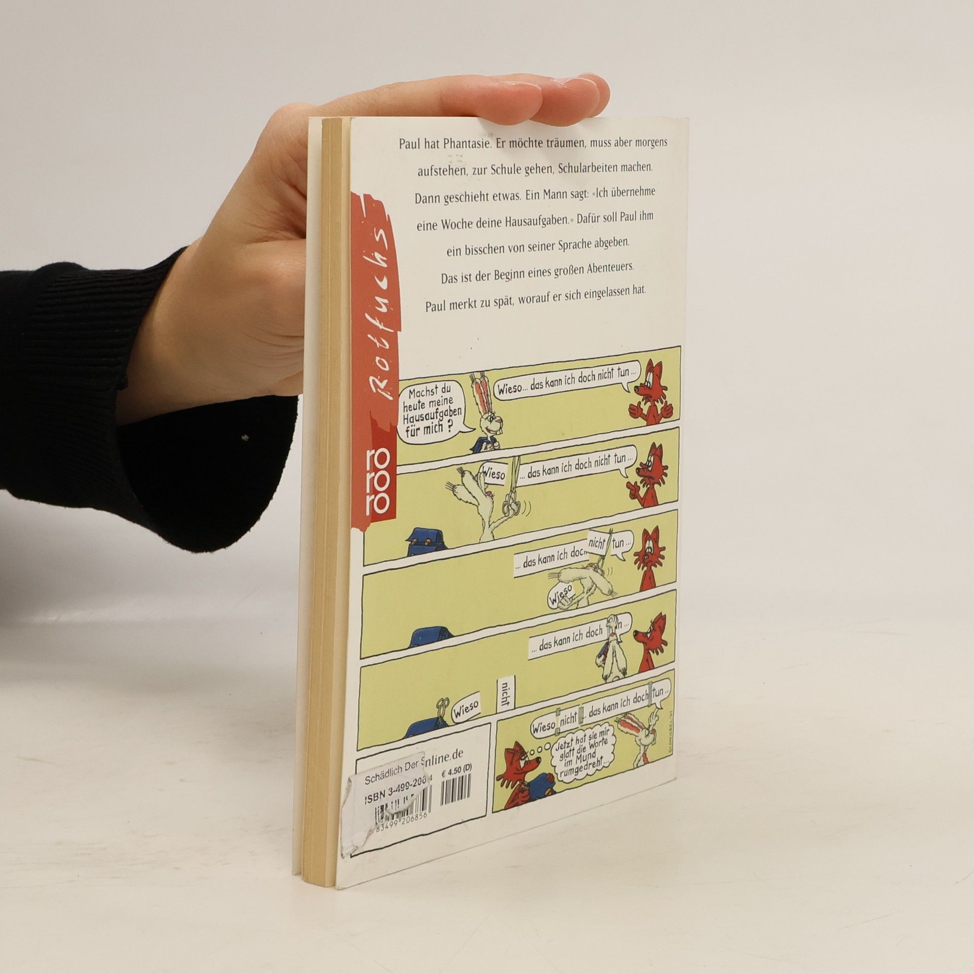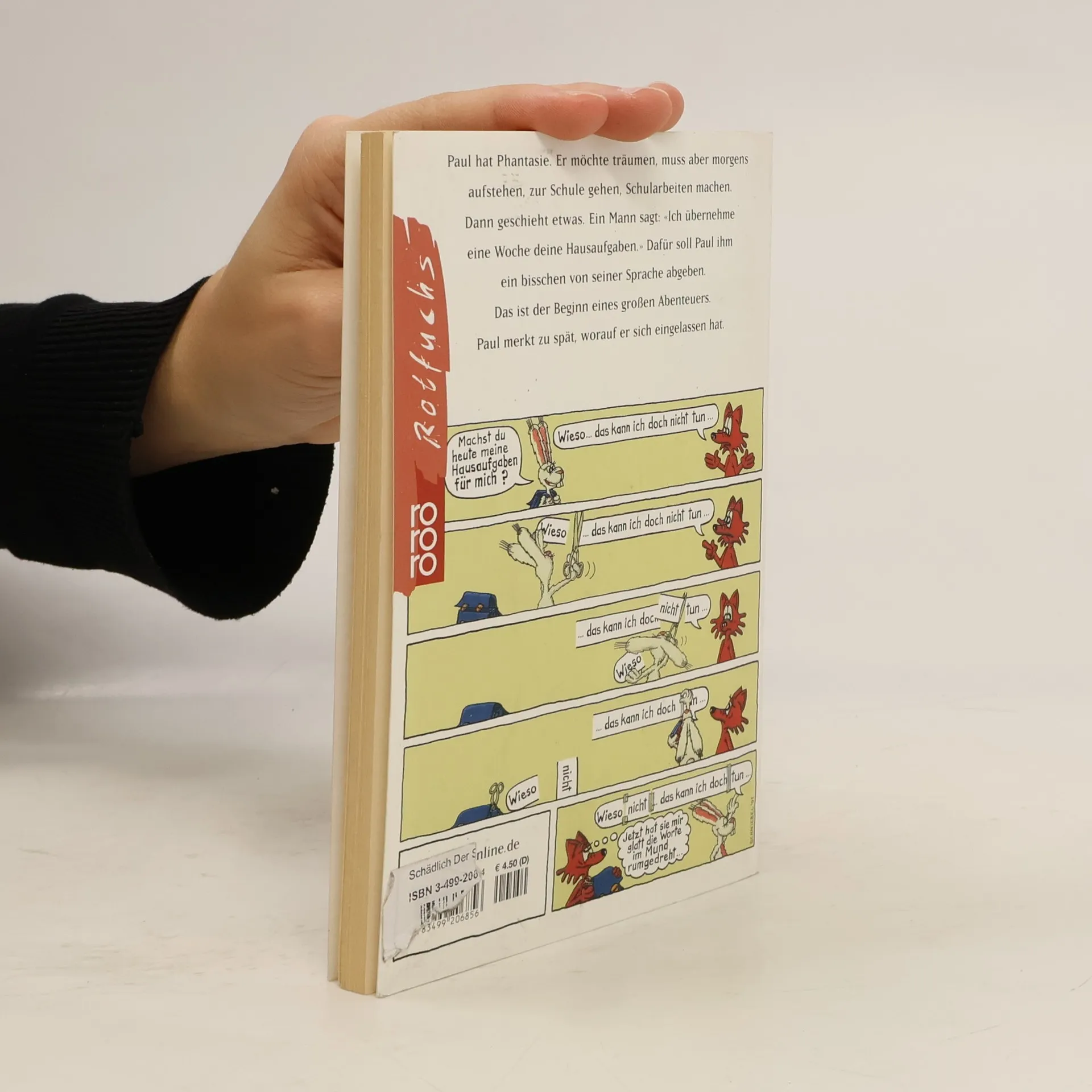 Paul hat Phantasie. Er möchte träumen, muss aber morgens aufstehen, zur Schule gehen, Schularbeiten machen. Dann geschieht etwas. Ein Mann sagt: «Ich übernehme eine Woche deine Hausaufgaben.» Dafür soll Paul ihm ein bisschen von seiner Sprache abgeben. Das ist der Beginn eines großen Abenteuers. Paul merkt zu spät, worauf er sich eingelassen hat.