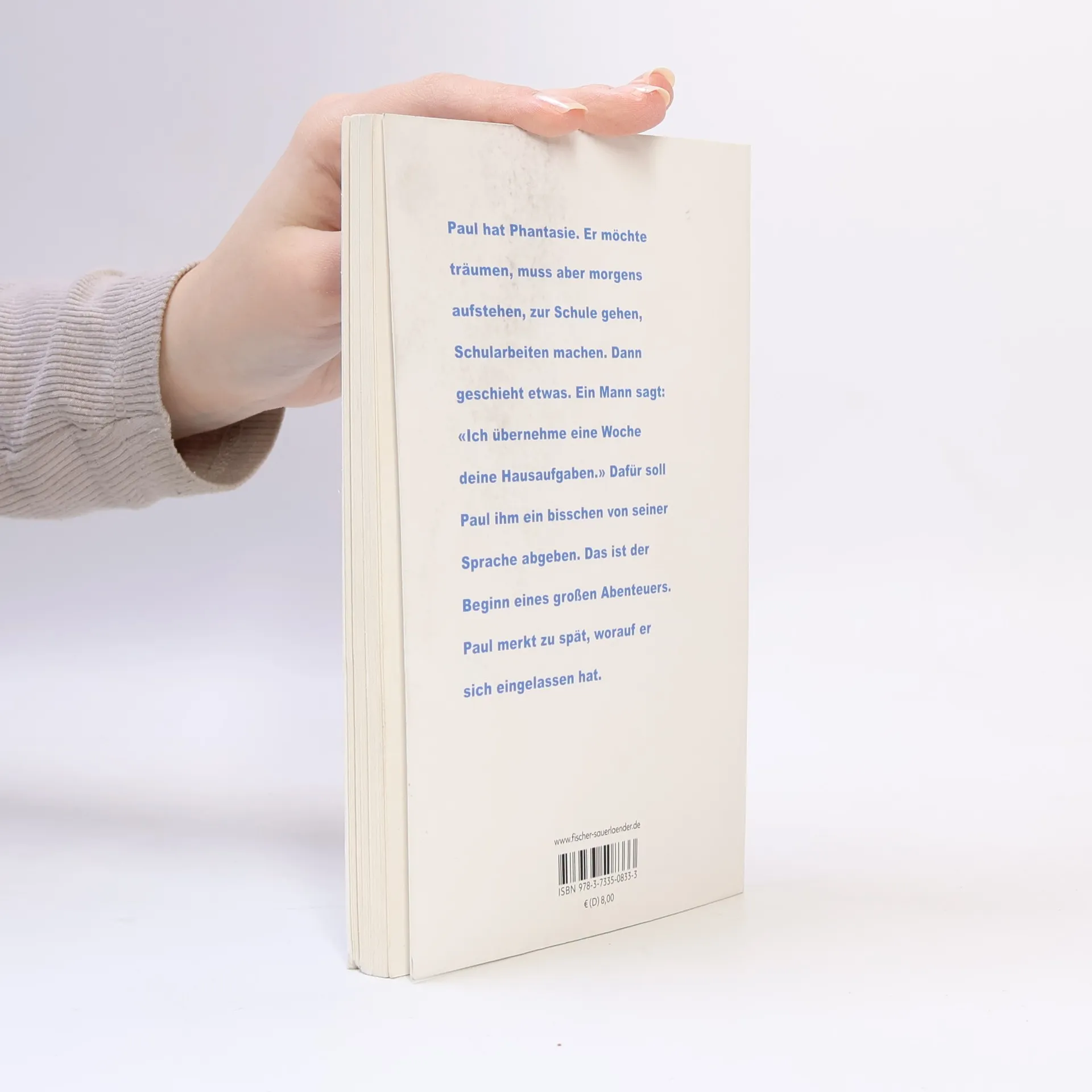 Paul hat Phantasie. Er möchte träumen, muss aber morgens aufstehen, zur Schule gehen, Schularbeiten machen. Dann geschieht etwas. Ein Mann sagt: «Ich übernehme eine Woche deine Hausaufgaben.» Dafür soll Paul ihm ein bisschen von seiner Sprache abgeben. Das ist der Beginn eines großen Abenteuers. Paul merkt zu spät, worauf er sich eingelassen hat.