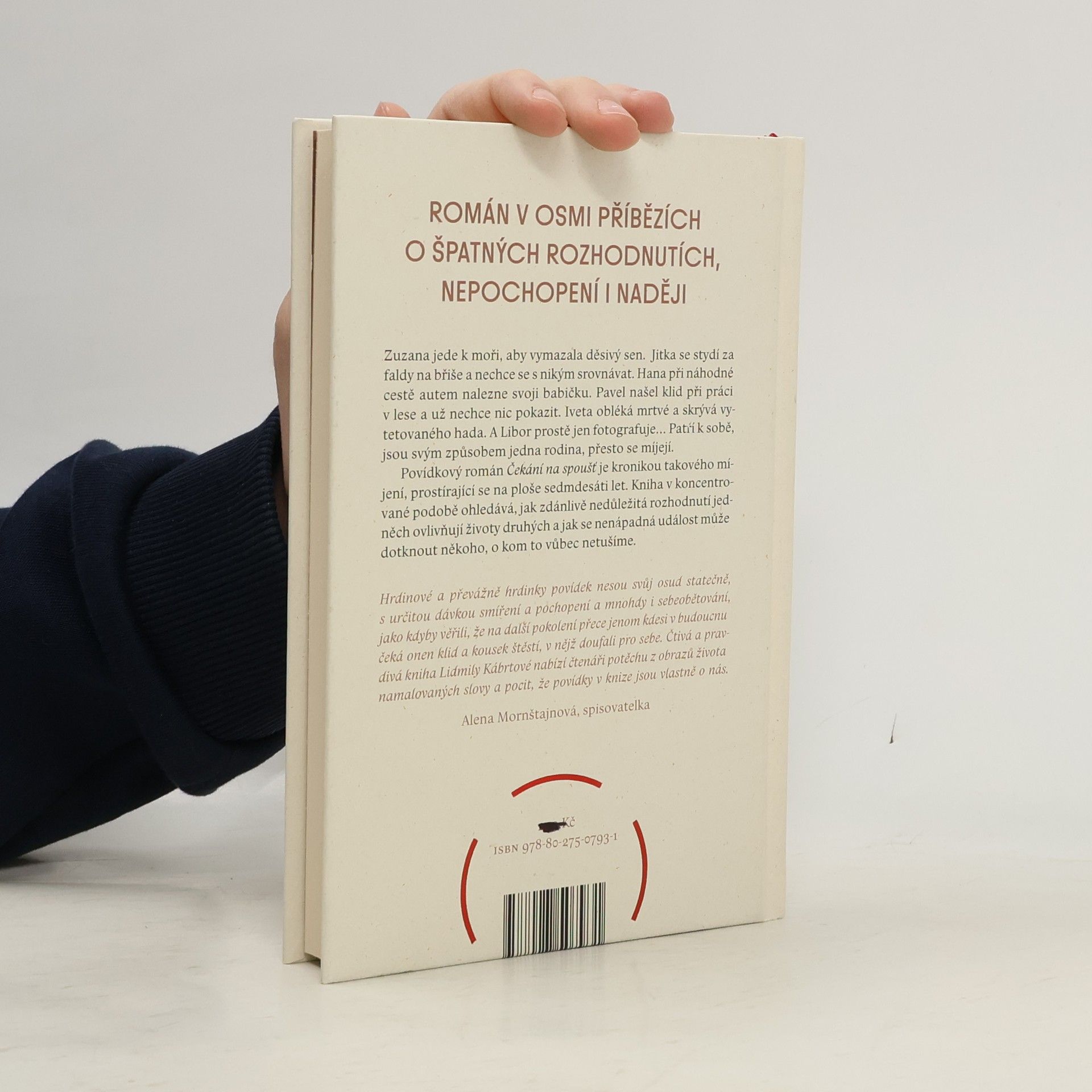 Román v osmi příbězích o špatných rozhodnutích, nepochopení i naději. Zuzana jede k moři, aby vymazala děsivý sen. Josef se rozhodl vsadit všechno na jednu kartu. Jitka se stydí za faldy na břiše a nechce se s nikým srovnávat. Hana při náhodné cestě autem nalezne svoji babičku. Jarmila roky vzdorovala, ale teď jen touží odejít úplně tiše. Pavel našel klid při práci v lese a už nechce nic pokazit. Iveta obléká mrtvé a skrývá vytetovaného hada. A Libor prostě jen fotografuje… Patří k sobě, jsou svým způsobem rodina, přesto se míjejí. A křivdy, bílá místa a bolest se množí. I oni by však rádi věřili, že bude líp… Povídkový román Čekání na spoušť Lidmily Kábrtové je kronikou takového míjení, prostírající se na ploše sedmdesáti let. Kniha v koncentrované podobě ohledává, jak zdánlivě nedůležitá rozhodnutí jedněch působí na životy druhých a jak se nenápadná událost může dotknout někoho, o kom to vůbec netušíme. Každá z hlavních postav Čekání na spoušť vypráví z vlastní perspektivy, každá se snaží dodat svému příběhu smysl. A přestože nalézání jedněch je často ztrácením druhých, nikdy není pozdě na smíření a odpuštění. Přinejmenším vůči sobě samým.