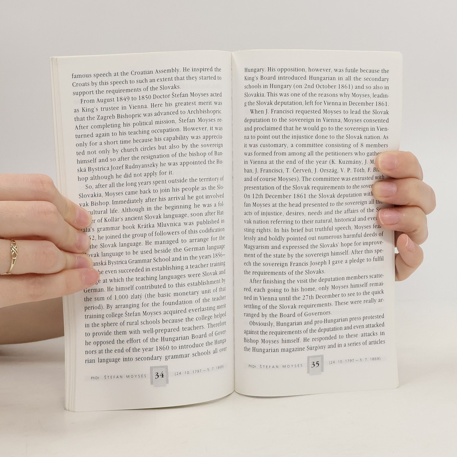 Životopis Štefana Moysesa, rímskokatolíckeho biskupa, v rokoch 1850-1869 banskobystrického diecézneho biskupa, pedagóga, verejného činiteľa, kultúrneho pracovníka, národovca, zakladateľa a prvého predsedu Matice slovenskej.
