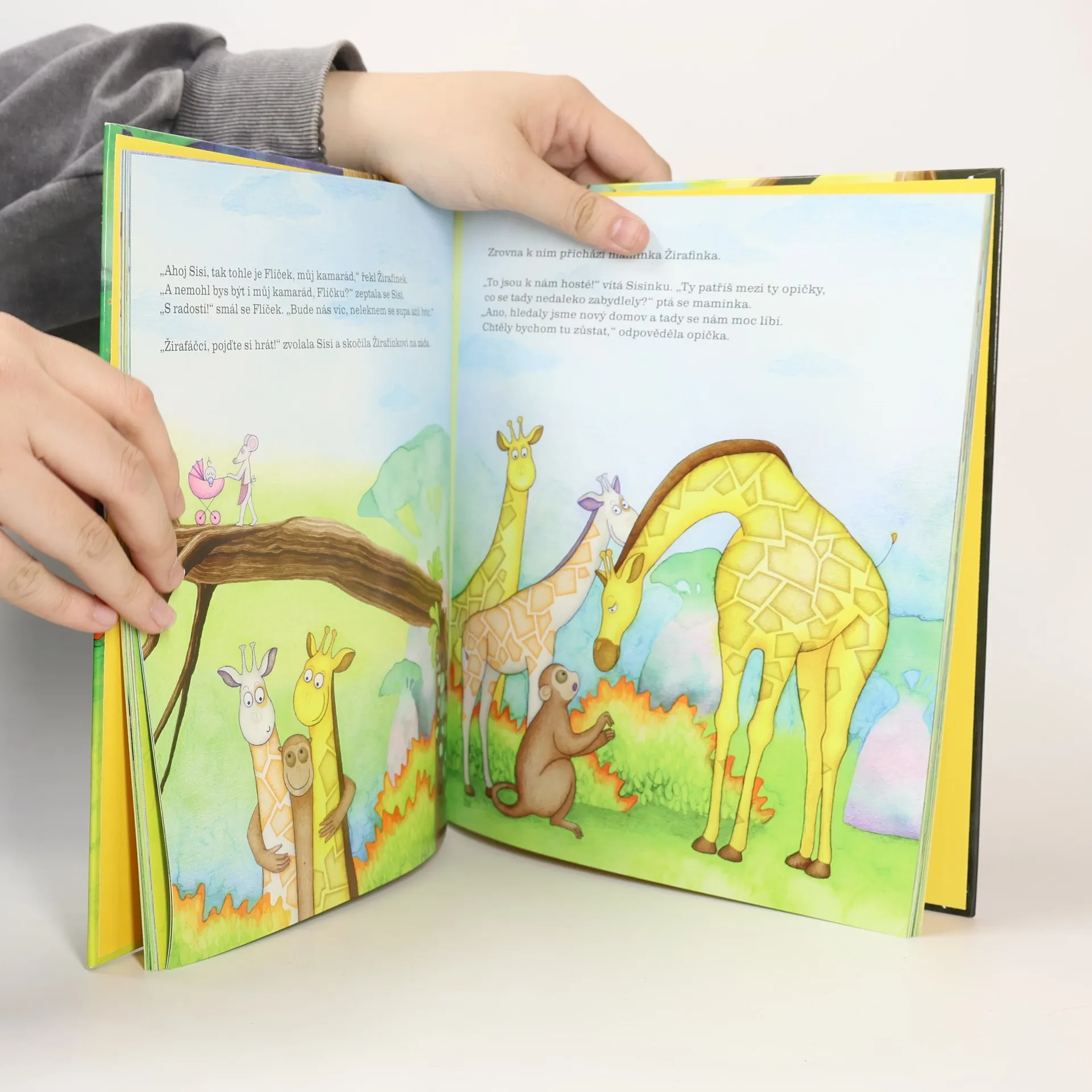 Příběhy dvou žirafích kamarádů, určené pro předškolní děti, nás zavedou do prostředí savany a akáciového hájku, který je domovem žirafího stáda. Žirafáčci se vydávají na výpravy do okolí a s pomocí svých kamarádů překonají každé nebezpečí. Tato kniha, doplněná milými ilustracemi, vede děti k tomu, aby poslouchaly své rodiče, uměly vycházet s druhými a vzájemně si pomáhaly.
