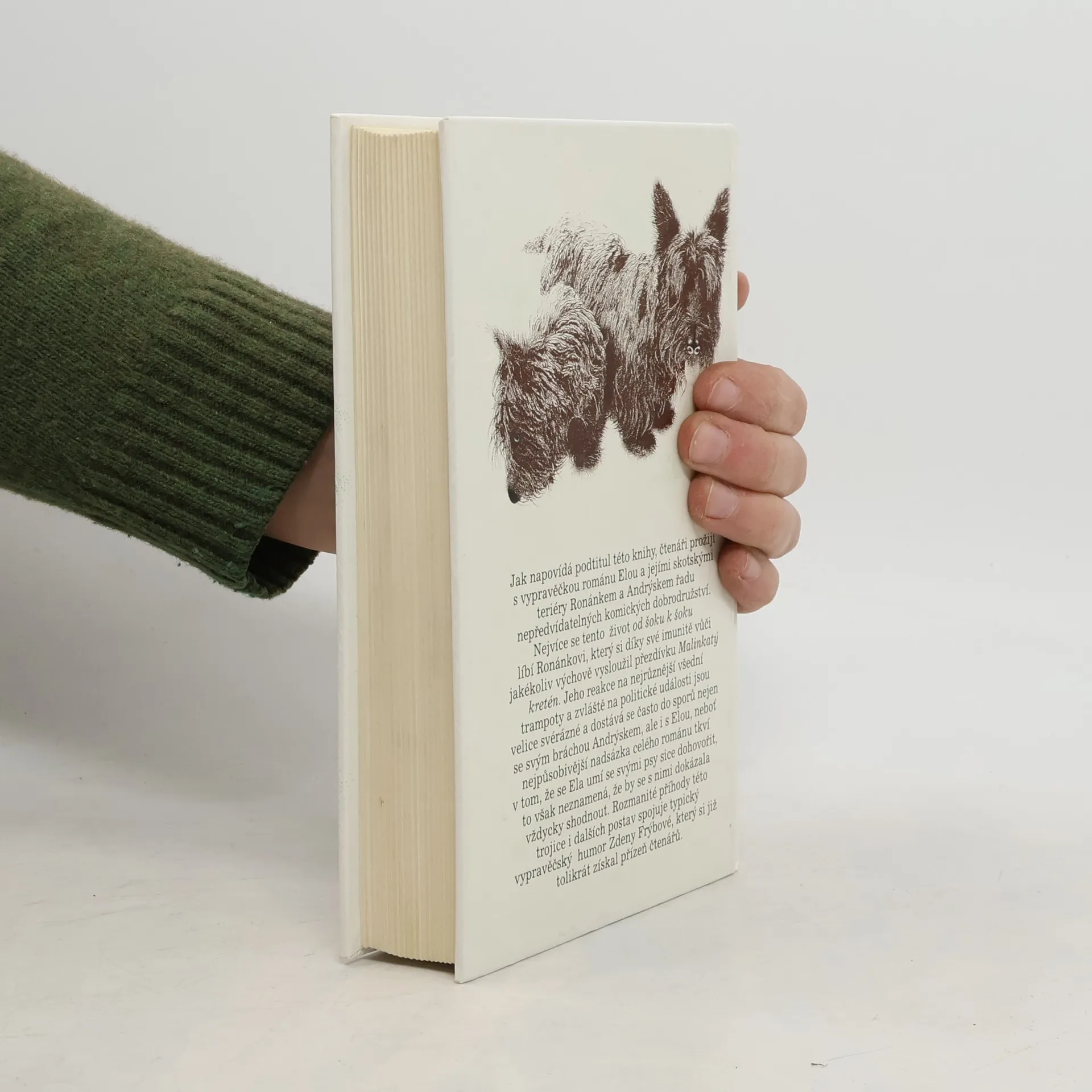 Humoristický román, v němž dva skotští teriéři Andrýsek a Ronánek přesvědčují dámu středního věku, že i po rozvodu může být život báječný a vzrušující. Vypravěčka románu Ela hned v úvodu knihy šokuje svého manžela, když jeho návrh na rozvod přijme s bohorovným klidem a okamžitě si začne plánovat život podle svého. Nečekané maléry, průšvihy a katastrofy, které život přináší, se líbí především Ronánkovi,který se díky své imunitě vůči jakékoliv výchově vysloužil přezdívku Malinkatý kretén.Jeho reakce na různé rodinné a společenské události jsou tak svérázné, že se často poštěká nejen se svým bráchou Andrýskem, ale i s Elou. Nejpůsobivější nadsázka celého románu tkví v tom, že se Ela umí se svými psy sice dohovořit, to však neznamená, že se s nimi shodne. Rozmanité příhody této trojice i dalších postav spojuje typický vypravěčský humor Zdeny Frýbové, který se již tolikrát získal srdce čtenářů.... celý text