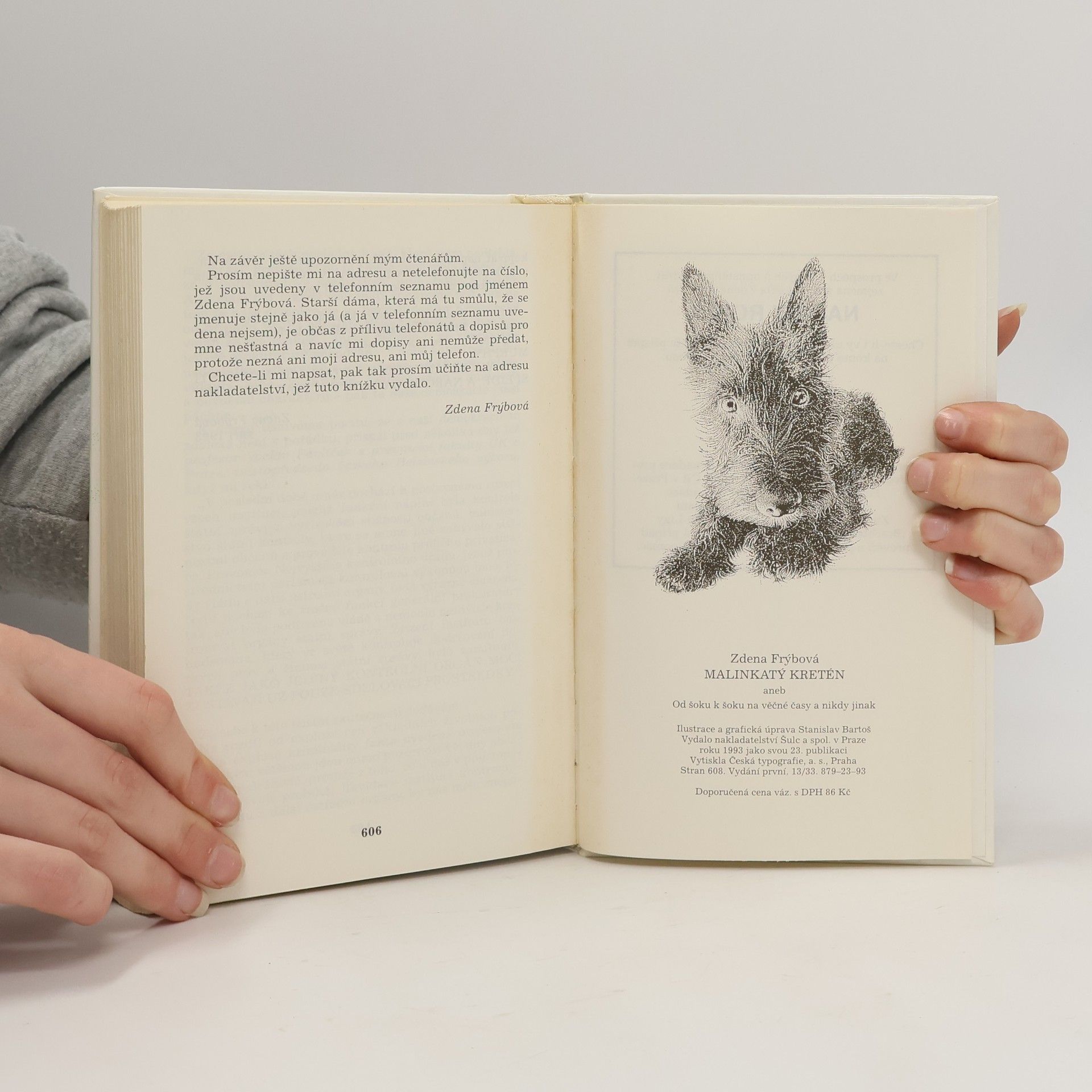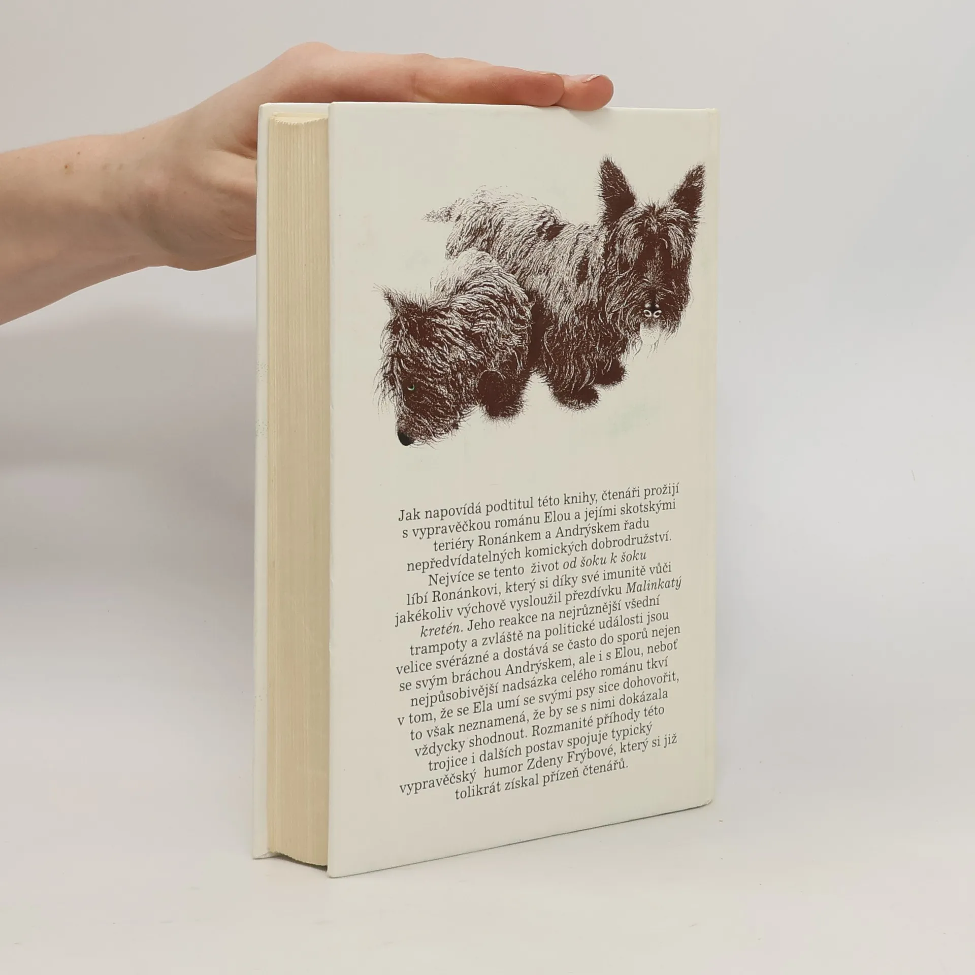 Humoristický román, v němž dva skotští teriéři Andrýsek a Ronánek přesvědčují dámu středního věku, že i po rozvodu může být život báječný a vzrušující. Vypravěčka románu Ela hned v úvodu knihy šokuje svého manžela, když jeho návrh na rozvod přijme s bohorovným klidem a okamžitě si začne plánovat život podle svého. Nečekané maléry, průšvihy a katastrofy, které život přináší, se líbí především Ronánkovi,který se díky své imunitě vůči jakékoliv výchově vysloužil přezdívku Malinkatý kretén.Jeho reakce na různé rodinné a společenské události jsou tak svérázné, že se často poštěká nejen se svým bráchou Andrýskem, ale i s Elou. Nejpůsobivější nadsázka celého románu tkví v tom, že se Ela umí se svými psy sice dohovořit, to však neznamená, že se s nimi shodne. Rozmanité příhody této trojice i dalších postav spojuje typický vypravěčský humor Zdeny Frýbové, který se již tolikrát získal srdce čtenářů.... celý text