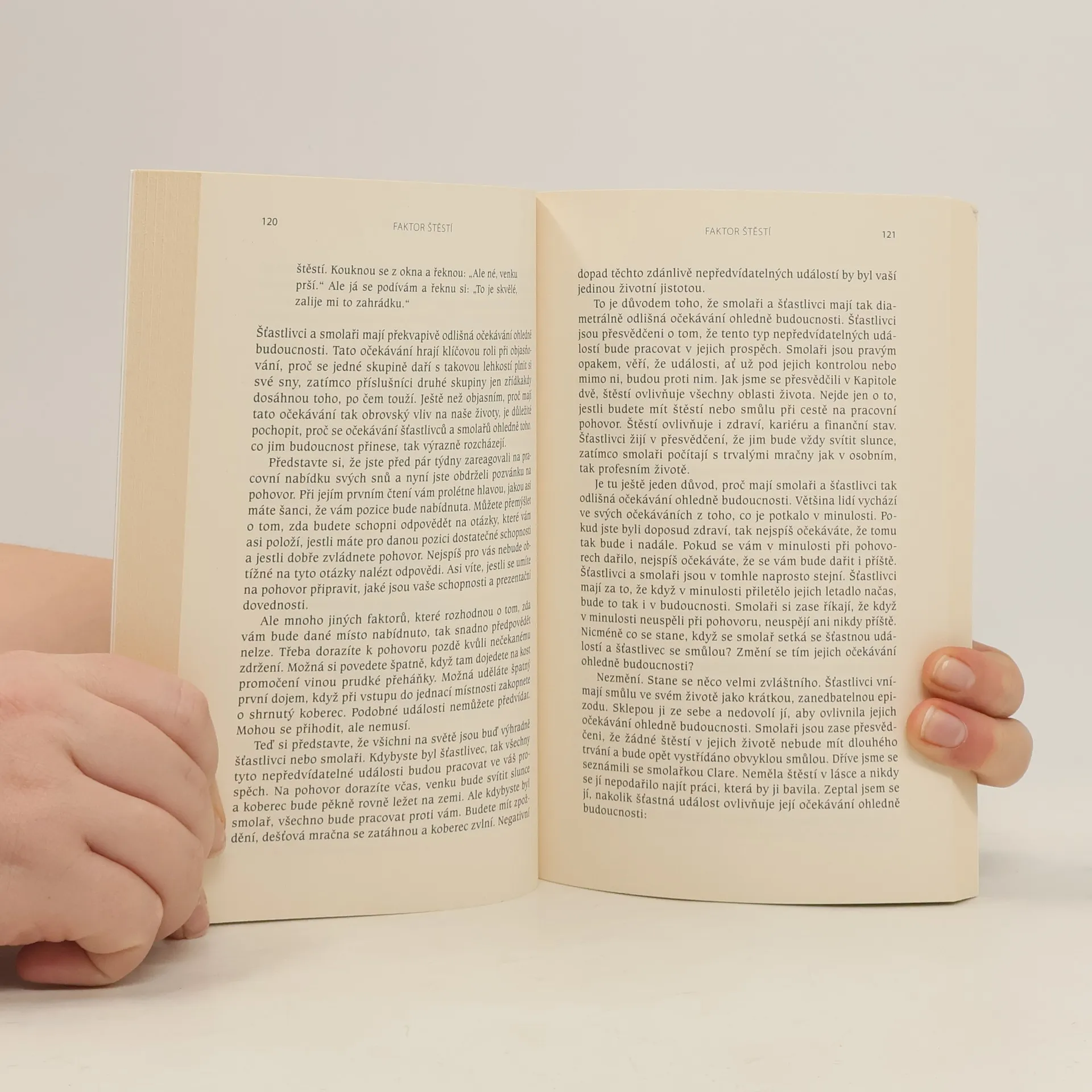 Vědecká studie šťastné mysly Proč jsou někteří lidé úspěšní a šťastní, zatímco život jiných je samý nezdar a smutek? Proč někteří najdou dokonalého partnera, zatímco jiní se potácejí od jednoho vztahu k druhému? Co umožňuje některým lidem vybudovat úspěšnou kariéru, zatímco jiní vykonávají práci, kterou nemají rádi? A může nešťastný člověk udělat něco pro zlepšení svého života? Může si naklonit štěstí na svou stranu? Před dvaceti lety se profesor Richard Wiseman rozhodl zkoumat zdánlivě nepolapitelné faktory štěstí tím, že zaznamenával názory, pocity a zkušenosti šťastných i nešťastných lidí. Výsledkem je radikálně nový způsob nahlížení na štěstí. V této knize Wiseman identifikuje a popisuje čtyři jednoduché behaviorální techniky, které byly vědecky prokázané, jež vám pomohou přilákat štěstí. A dále vám ukáže, jak tyto metody můžete použít doslova k revoluci v každé oblasti vašeho života - včetně vztahů, osobních financí a kariéry.