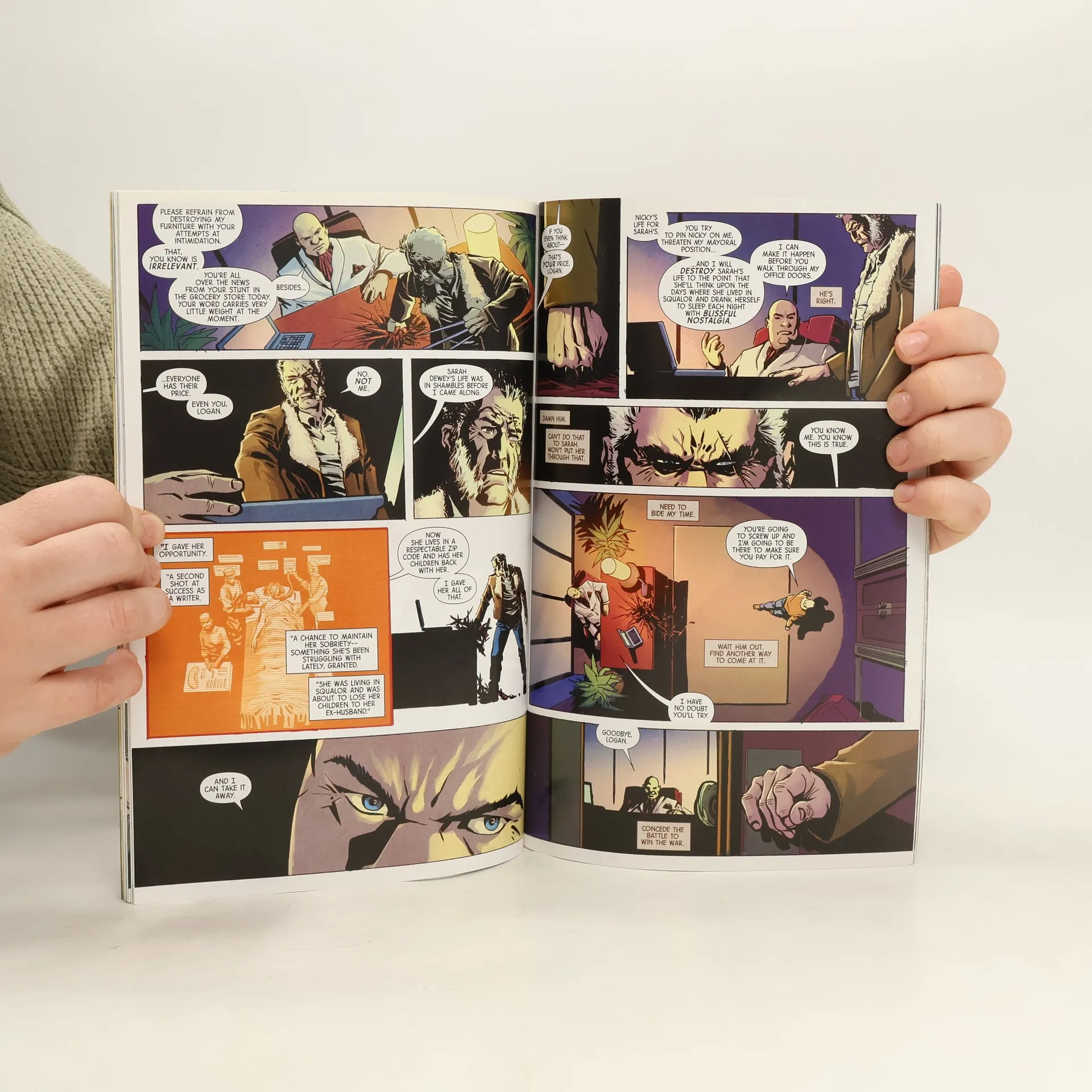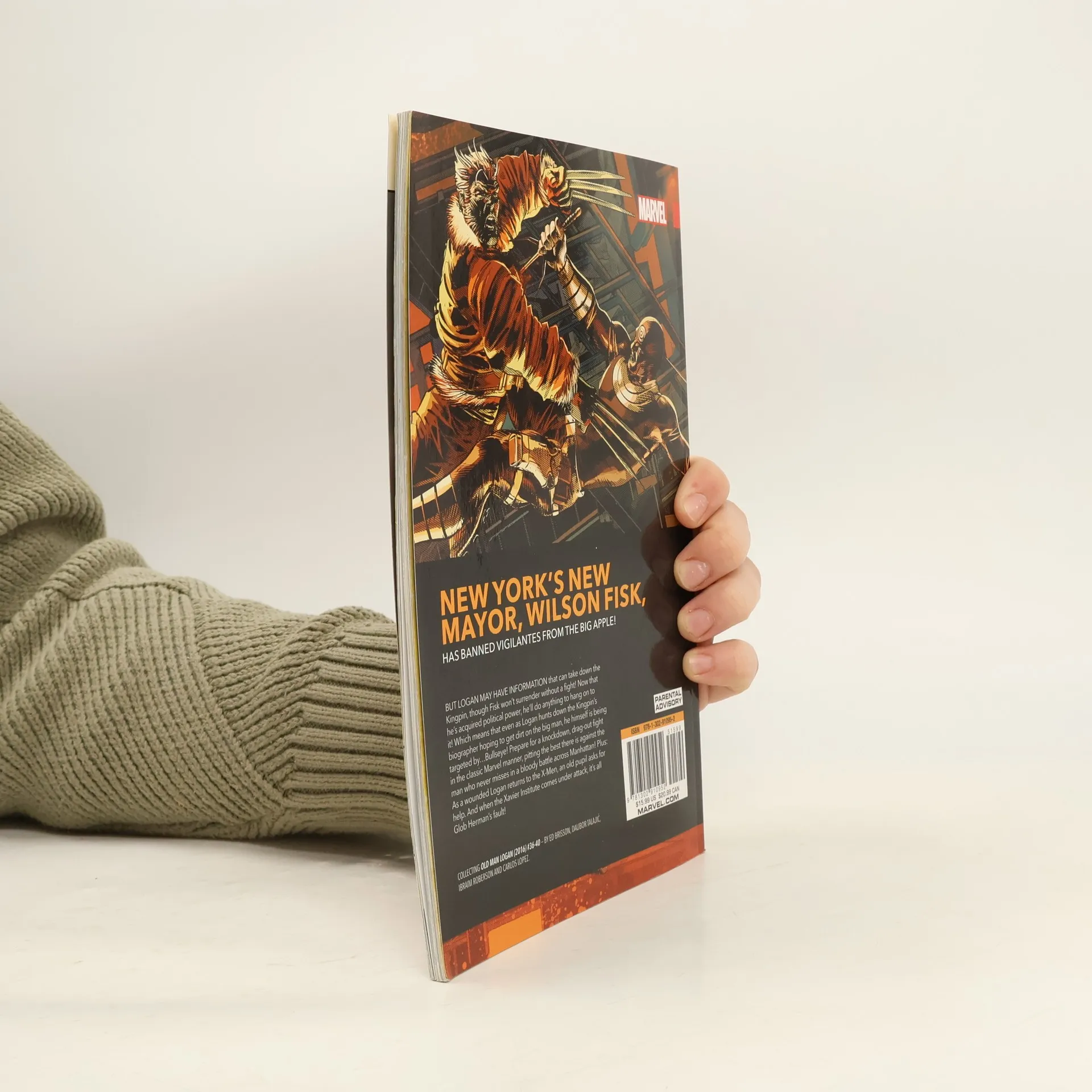 New York's new mayor, Wilson Fisk, has banned vigilantes from the Big Apple! But Logan may have information that can take the Kingpin down! Fisk won't go down without a fight, though - now that he's acquired political power, he'll do anything to hang on to it! Which means that, even as Logan hunts down the Kingpin's biographer hoping to get dirt on the big man, he himself is being targeted by...Bullseye! Prepare for a knock-down drag-out fi ght in the classic Marvel manner, pitting the best there is against the man who never misses in a bloody battle across Manhattan! Someone's going to die! But...who?! COLLECTING: OLD MAN LOGAN 36-40