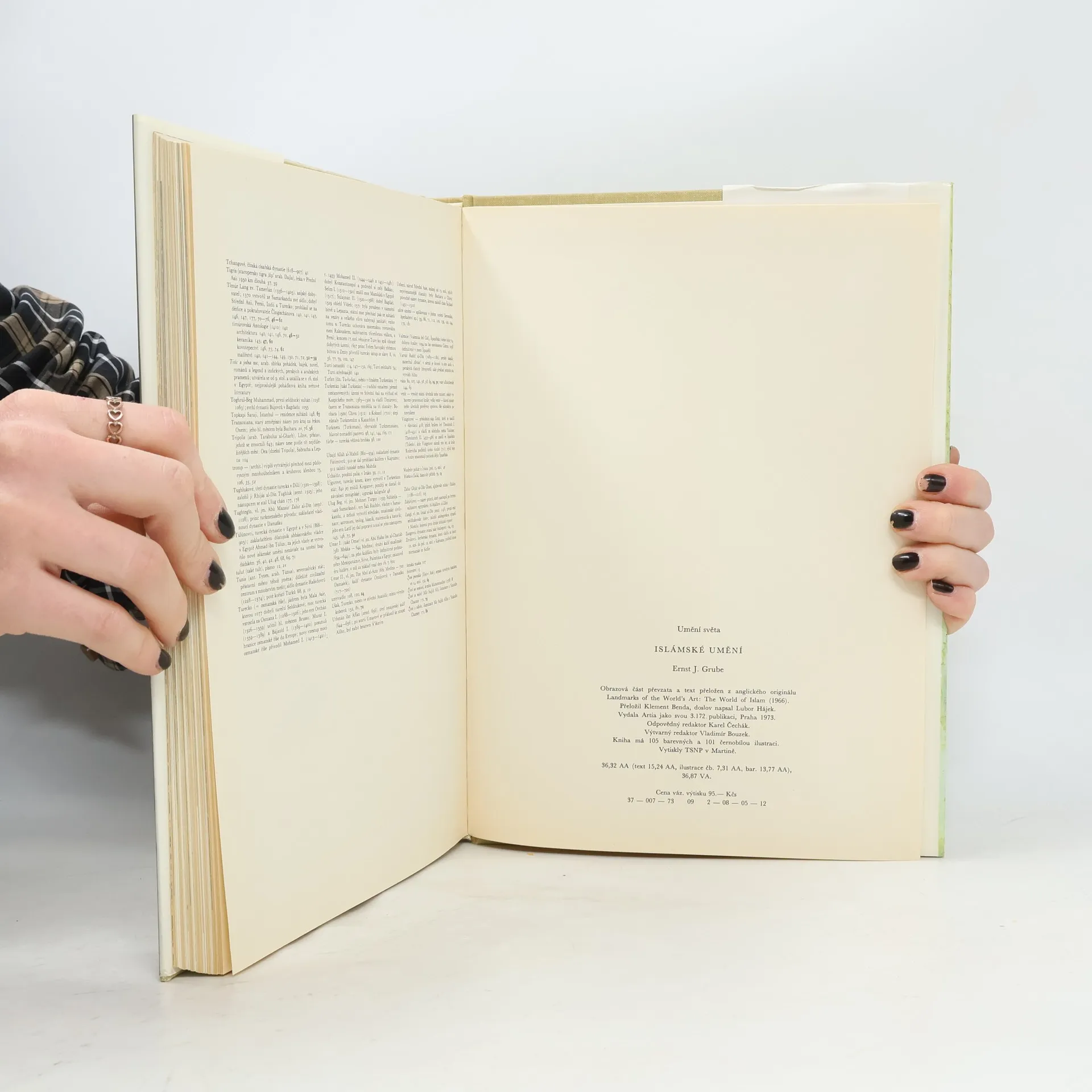 Uměleckohistorická práce o hlavních vývojových tendencích islámského umění, vyrůstajícího z předislámských tradic podrobených zemí a z arabských, perských a tureckých prvků, demonstruje bohatství a rozmanitost jeho projevů v architektuře, malířství, keramice, kovu, řezbě, kobercíchaj. Látka je rozčleněna podle jednotlivých dynastií, jež ovládaly části původně jednotné muslimské říše. 105 barevných a 101 černobílých ilustrací. – Doslov Lubor Hájek.
