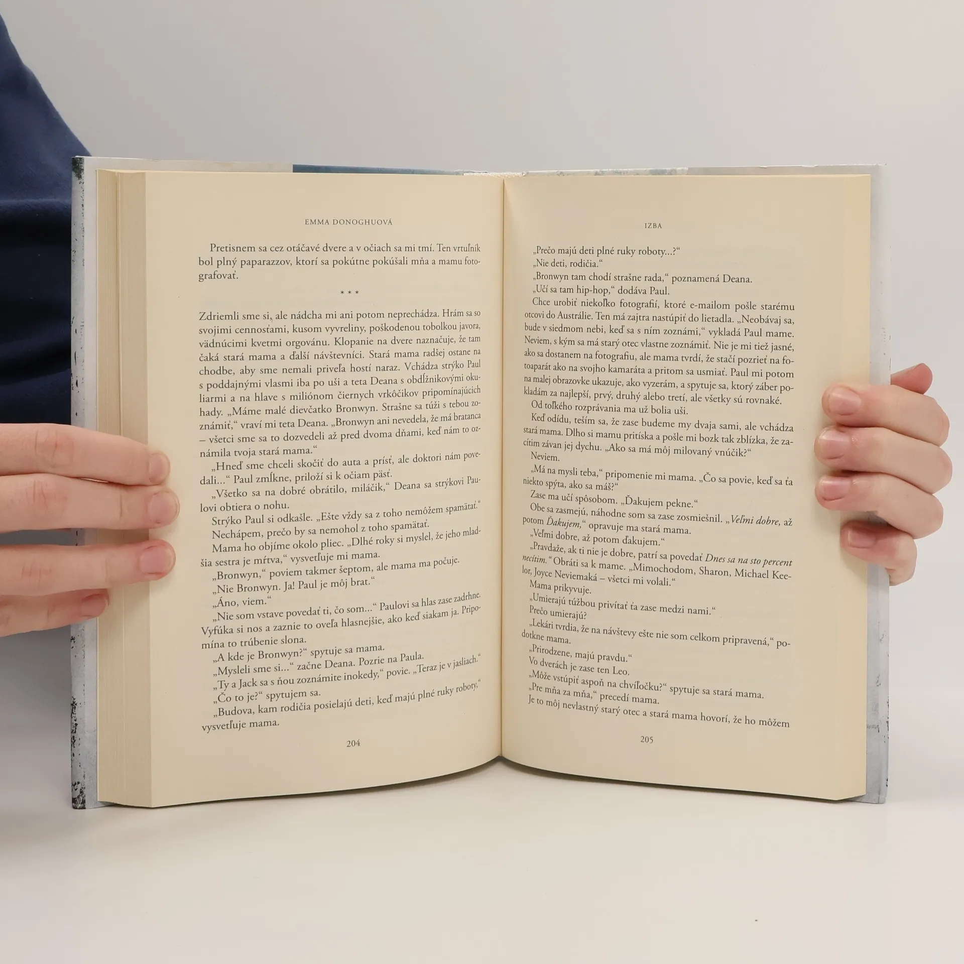 Neraz sa hovorí, že deti majú vždy pravdu. Aj preto úlohou rozprávača svojho trpkého príbehu zverila Emma Donoghuová päťročnému chlapcovi. Jack je mimoriadny rozprávač hneď z niekoľkých dôvodov: vyrastá v prostredí izby, záhradného domčeka prebudovaného na nedobytnú pevnosť, izolovaný od vonkajšieho sveta. Od svojho narodenia nikdy nebol „vonku“ a pozná iba predmety, s ktorými prichádza do styku vo svojej nedobrovoľnej cele. Poznanie o svete nadobúda iba prostredníctvom niekoľkých detských kníh a detských televíznych seriálov. Všetko, čo je mimo izby, je televízne, jedine izba je skutočná. Jeho výlučným medziľudským vzťahom je vzťah k rovnako uväznenej a týranej matke. Pravdaže, tento nielen materský, ale aj priateľský vzťah mu umožňuje duševne dozrievať oveľa rýchlejšie, než dozrievajú jeho rovesníci, a tak nás nemôže prekvapiť, že hoci má iba päť rokov, vie nielen čítať, písať a počítať, ale vie aj prekvapujúco presne a hodnoverne svoj príbeh vyrozprávať. Donoghuová „vonkajší svet“ chvíľami paroduje – najmä televízne interview s chlapcovou matkou a úryvky z novín, ktoré nastoľujú krivé zrkadlo všetkým necnostiam bulvárnej publicistiky, ale aj nezrozumiteľné mudrovanie psychiatra či čudne usporiadané pomery v rodine chlapcových starých rodičov. Ani chvíľu však nenecháva čitateľa v pochybnostiach, že matka a syn po „veľkom úteku“ začínajú nový život s optimistickou perspektívou.