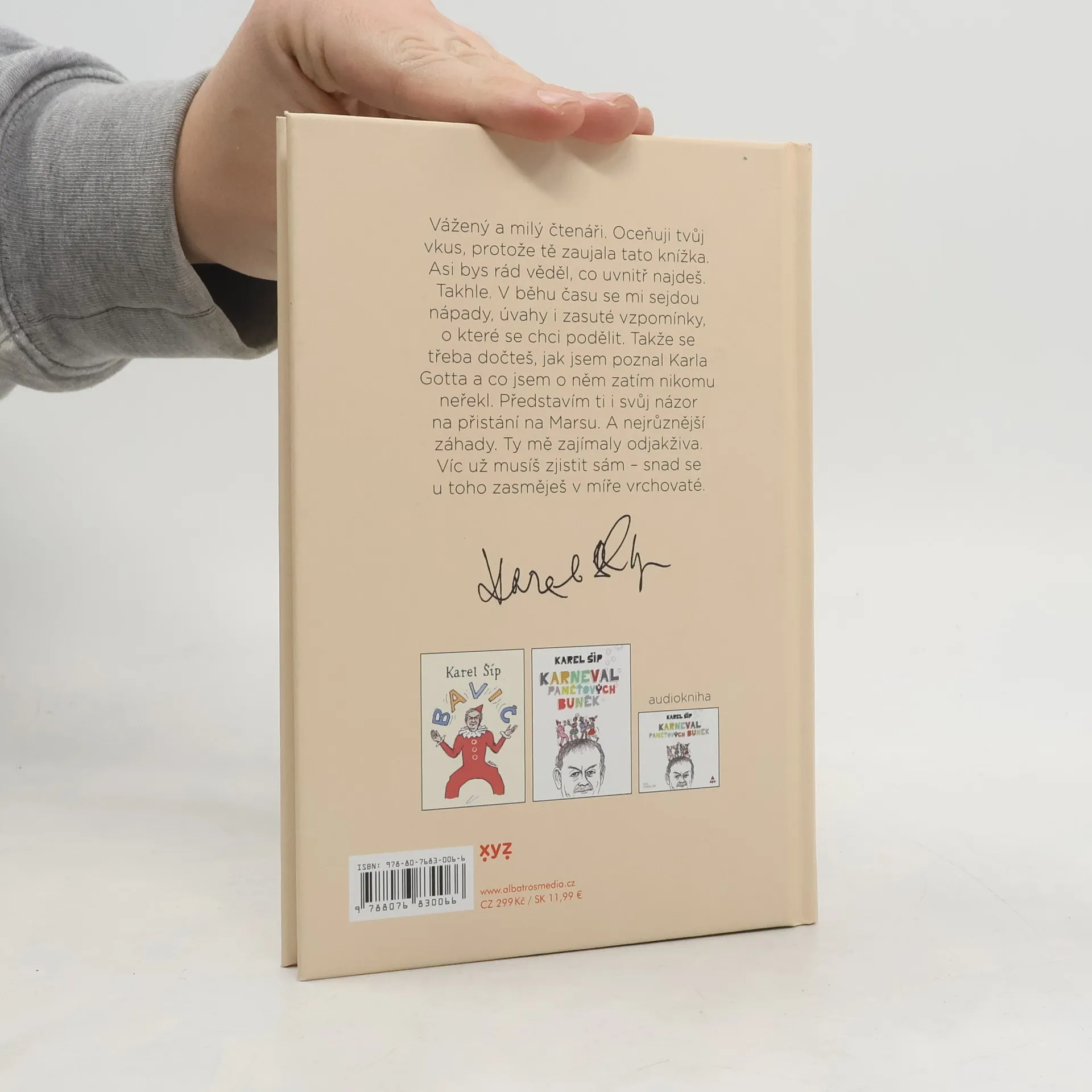 Glosy a vzpomínky Karla Šípa, které vás zasáhnou přímo do bránice. Vážený a milý čtenáři. Oceňuji tvůj vkus, protože tě zaujala tato knížka. Asi bys rád věděl, co uvnitř najdeš. Takhle. V běhu času se mi sejdou nápady, úvahy i zasuté vzpomínky, o které se chci podělit. Takže se třeba dočteš, jak jsem poznal Karla Gotta a co jsem o něm zatím nikomu neřekl. Představím ti i svůj názor na přistání na Marsu. A nejrůznější záhady. Ty mě zajímaly odjakživa. Víc už musíš zjistit sám – snad se u toho zasměješ v míře vrchovaté.