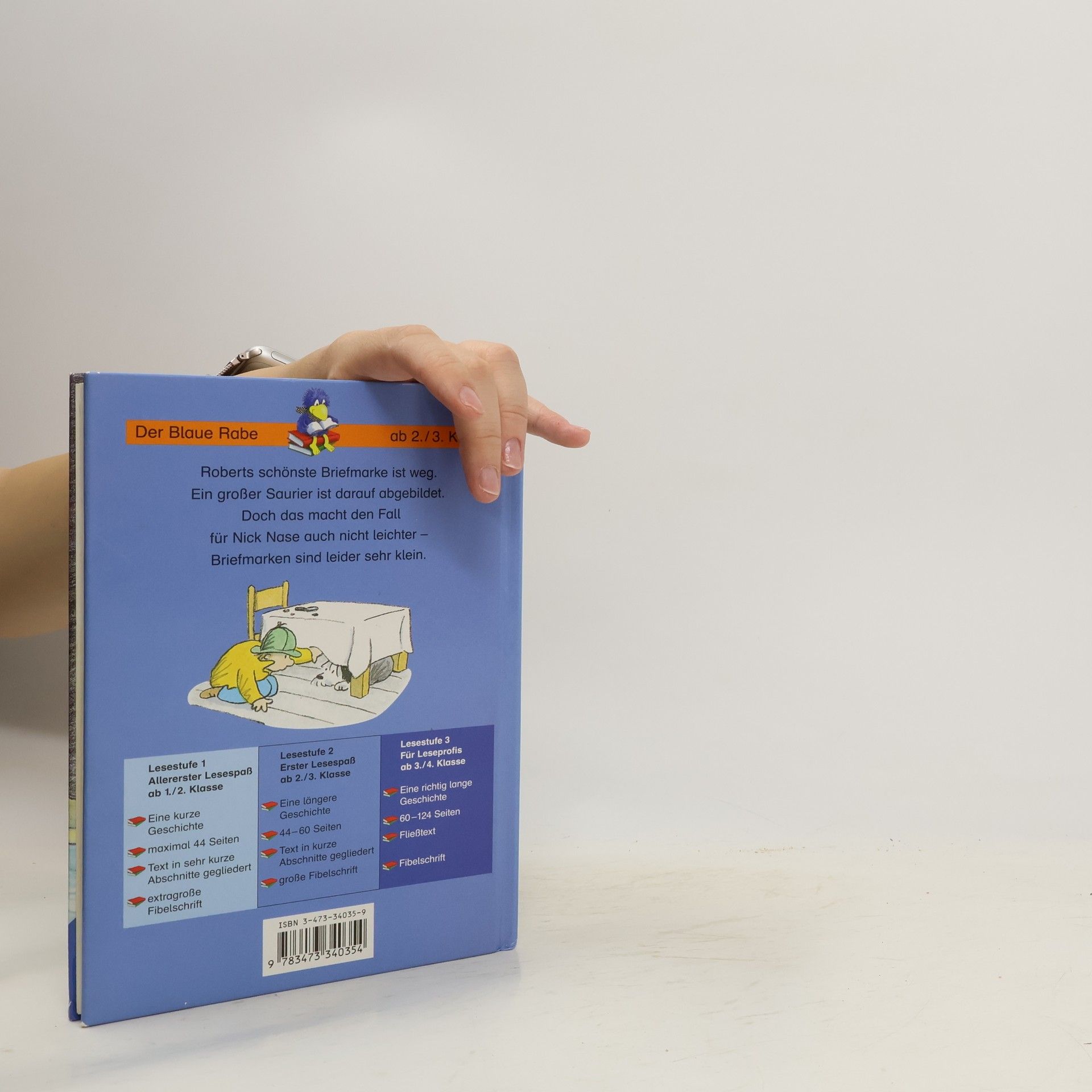 Der kleine Detektiv sucht für seinen Freund Robert nach einer verschwundenen seltenen Briefmarke, auf der ein Saurier abgebildet ist. Leider sind Briefmarken ziemlich klein ...