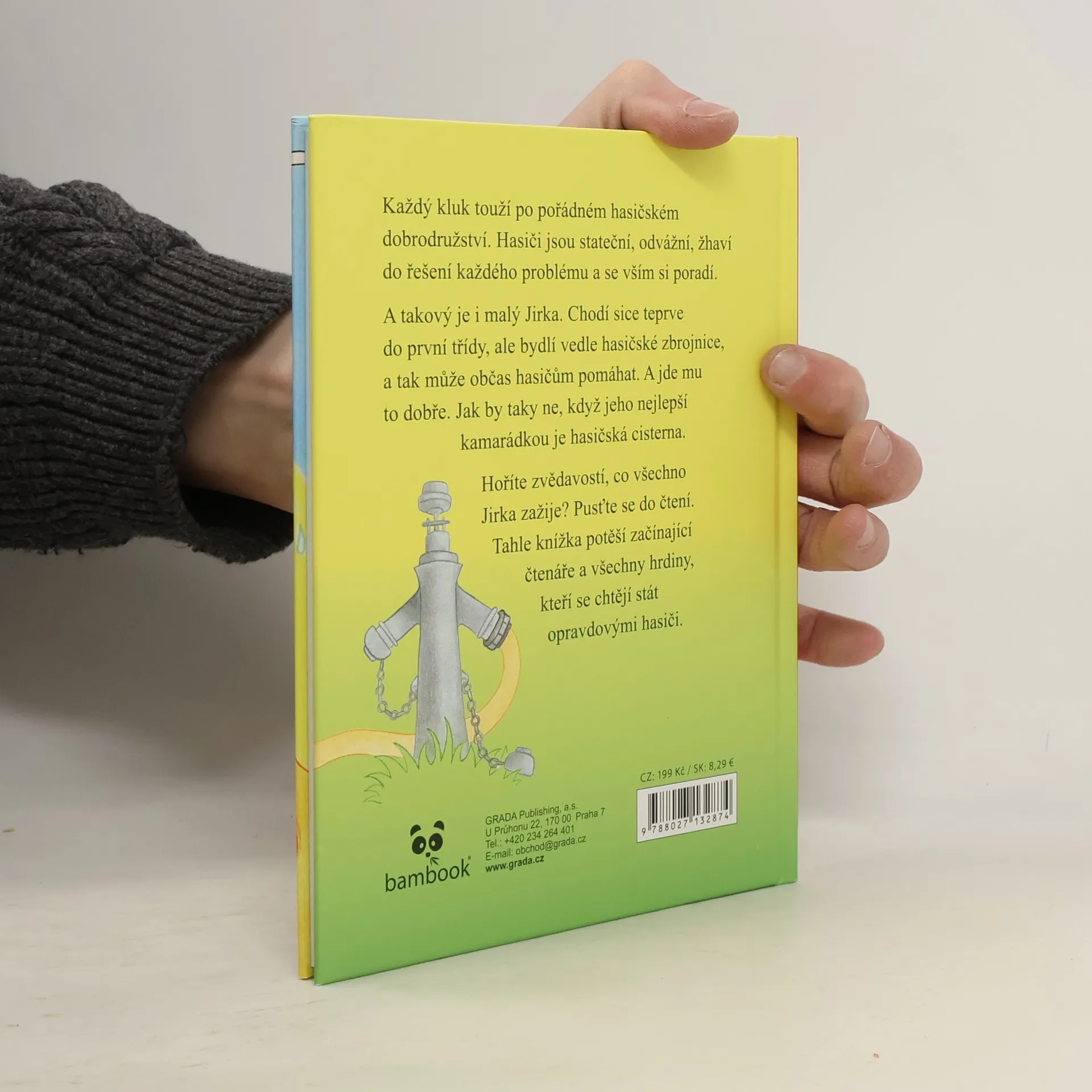 Každý kluk touží po pořádném hasičském dobrodružství. Hasiči jsou stateční, odvážní, žhaví do řešení každého problému a se vším si poradí. A takový je i malý Jirka. Chodí sice teprve do první třídy, ale bydlí vedle hasičské zbrojnice, a tak může občas hasičům pomáhat. A jde mu to dobře. Jak by taky ne, když jeho nejlepší kamarádkou je hasičská cisterna. Hoříte zvědavostí, co všechno Jirka zažije? Pusťte se do čtení. Tahle knížka potěší začínající čtenáře a všechny hrdiny, kteří se chtějí stát opravdovými hasiči.
