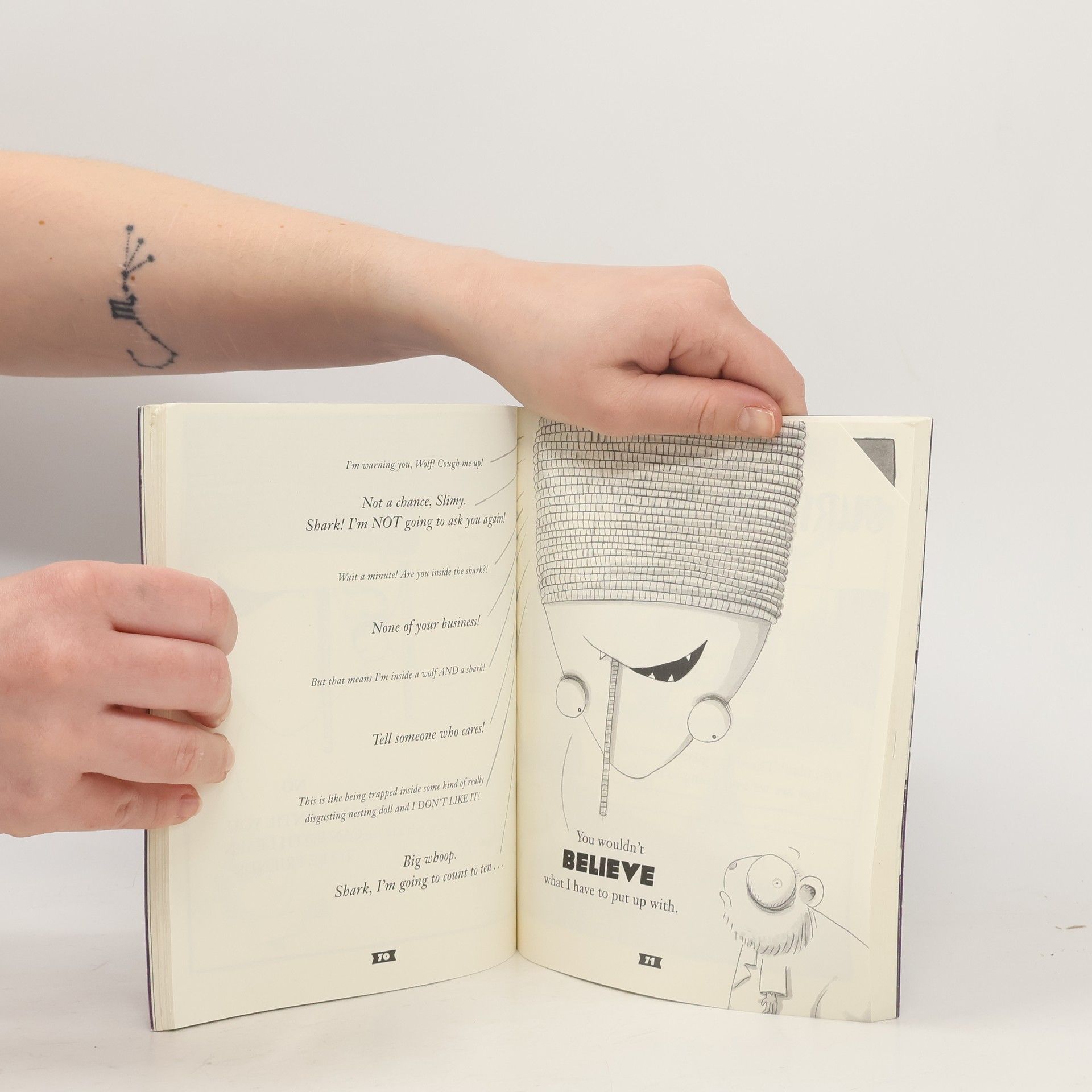 Still yearning to be seen as heroes, Wolf, Shark, Snake, and Piranha set out to rescue ten thousand chickens from a high-tech cage farm--but one unexpected problem is Mr. Snake himself, also known as "The Chicken Swallower."