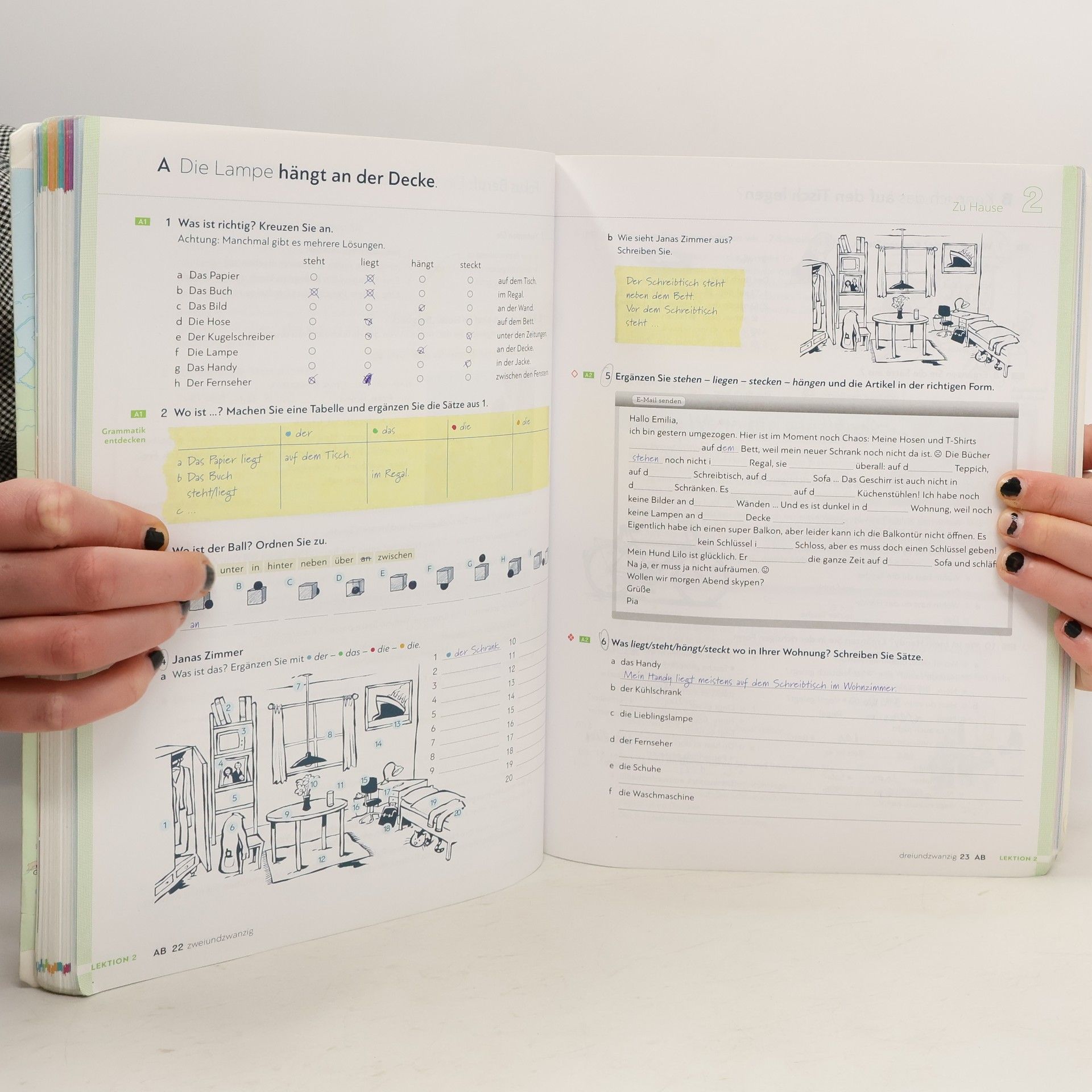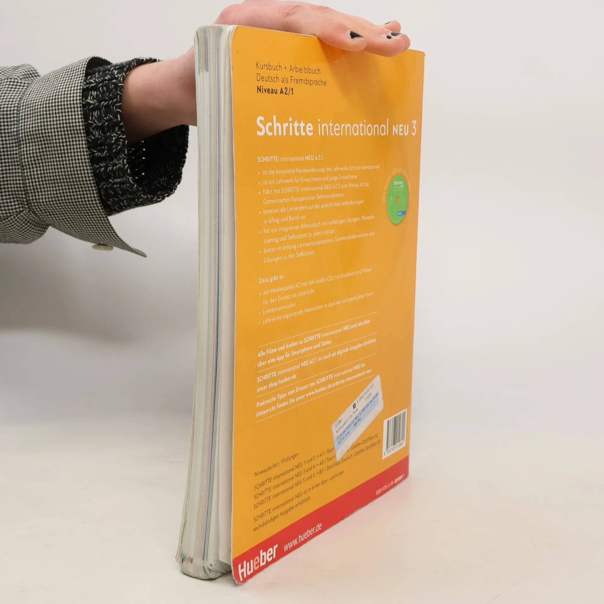 Zielniveau A2.1 Teilband A2.1 Kursbuchteil - alle Lektionen folgen einem klaren Aufbau für hohe Lerntransparenz - neue Foto-Hörgeschichten als Einstieg in jede Lektion - interessante Texte und vielfältige Landeskunde - induktive Grammatik fördert Bewusstmachung und Verständnis - Vorbereitung auf den Berufsalltag durch verstärkten Berufsbezug - Stärkung der Lernerautonomie durch eine Doppelseite zu Grammatik und Redemitteln mit Übungen und Lernhilfen am Ende jeder Lektion - Transparenz durch Lernziele mit der Möglichkeit zur Selbsteinschätzung - flexible Ergänzung der Lektionsinhalte durch die „Zwischendurch mal …-Seiten“ - alle Audiodateien und Filme zum Kursbuch über mobile Geräte (Smartphone, Tablet-PC) abrufbar mit kostenloser App Arbeitsbuchteil - Übungen und Wiederholungsübungen in verschiedenen Schwierigkeitsstufen zur Binnendifferenzierung - ein systematisch aufgebautes Schreibtraining - Wortschatztraining für einen gezielten Wortschatzerwerb - ein ausführliches Phonetikprogramm - Aufgaben zum Mehrsprachigkeitsansatz - Prüfungsaufgaben - Lernertests mit Selbstauswertung und weiterführendem Trainingsprogramm im Lehrwerkservice - integrierte Fokus-Seiten bieten zahlreiche zusätzliche Materialien zu den Themen Beruf und Alltag. - Lernwortschatz-Seiten am Ende des Buches mit Illustrationen und Beispielsätzen, Schreibzeilen und Lerntipps - eine systematische Grammatik-Übersicht im Anhang