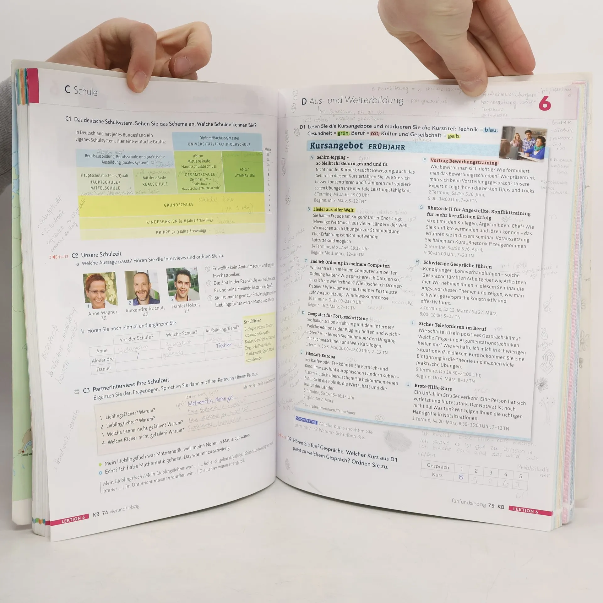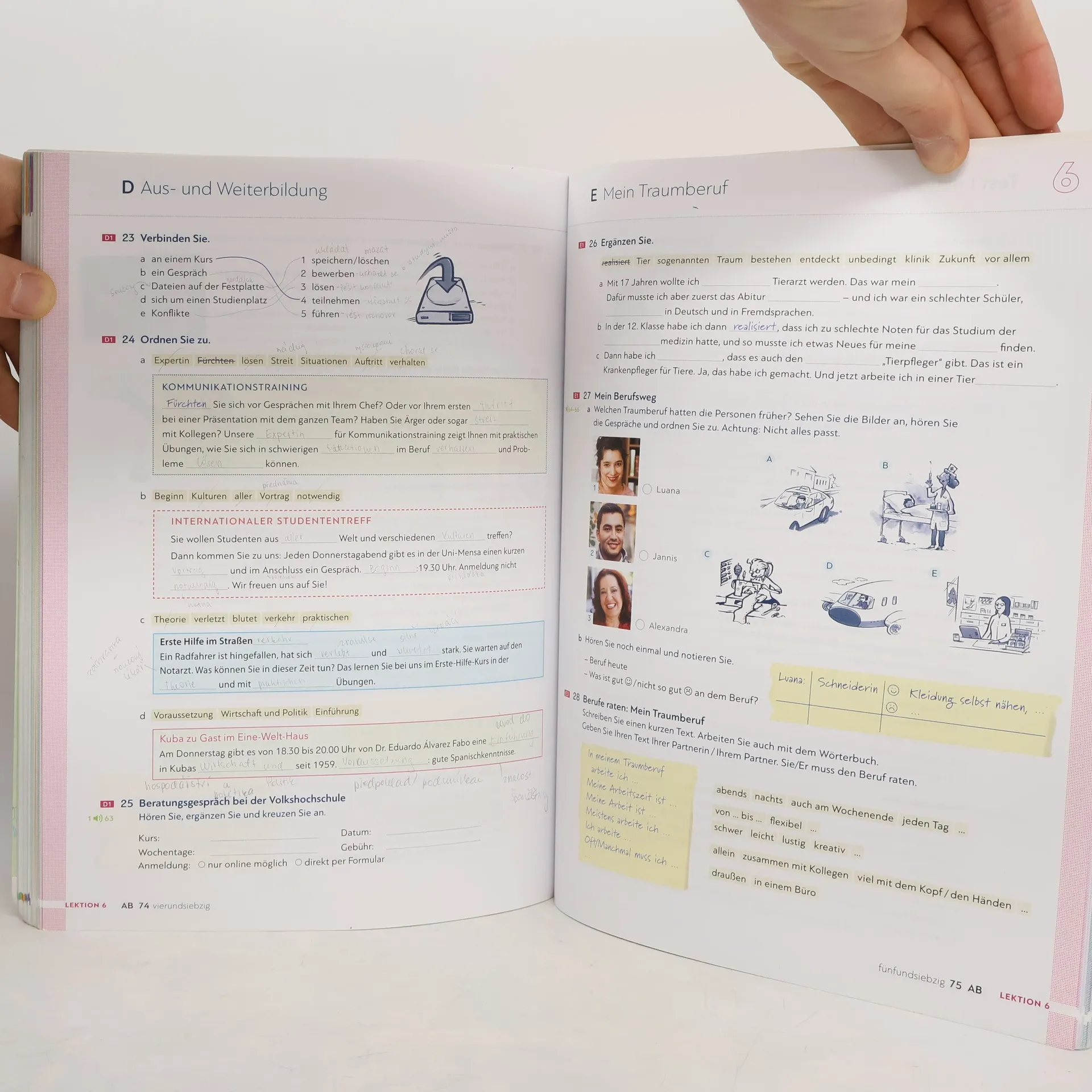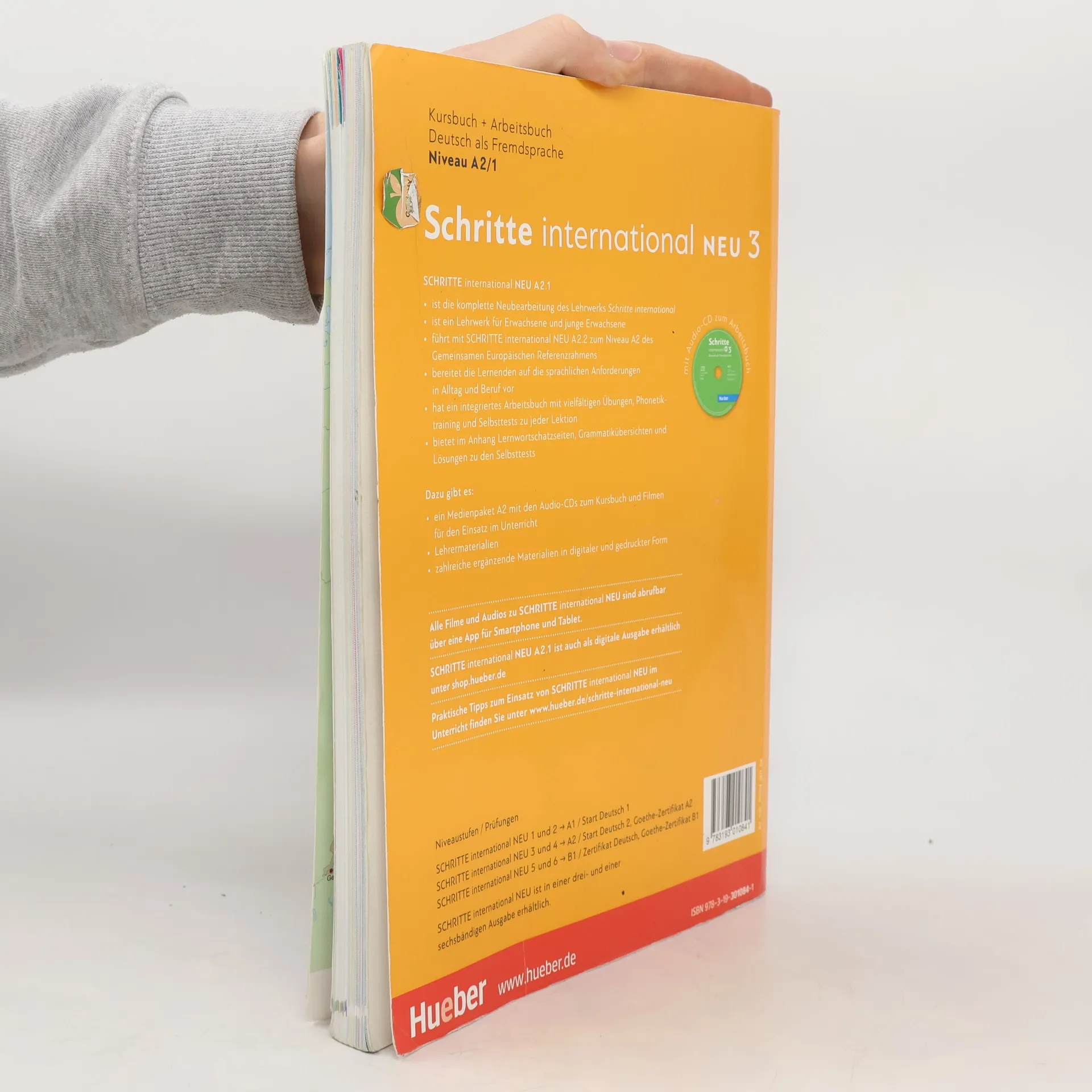 Zielniveau A2.1 Teilband A2.1 Kursbuchteil - alle Lektionen folgen einem klaren Aufbau für hohe Lerntransparenz - neue Foto-Hörgeschichten als Einstieg in jede Lektion - interessante Texte und vielfältige Landeskunde - induktive Grammatik fördert Bewusstmachung und Verständnis - Vorbereitung auf den Berufsalltag durch verstärkten Berufsbezug - Stärkung der Lernerautonomie durch eine Doppelseite zu Grammatik und Redemitteln mit Übungen und Lernhilfen am Ende jeder Lektion - Transparenz durch Lernziele mit der Möglichkeit zur Selbsteinschätzung - flexible Ergänzung der Lektionsinhalte durch die „Zwischendurch mal …-Seiten“ - alle Audiodateien und Filme zum Kursbuch über mobile Geräte (Smartphone, Tablet-PC) abrufbar mit kostenloser App Arbeitsbuchteil - Übungen und Wiederholungsübungen in verschiedenen Schwierigkeitsstufen zur Binnendifferenzierung - ein systematisch aufgebautes Schreibtraining - Wortschatztraining für einen gezielten Wortschatzerwerb - ein ausführliches Phonetikprogramm - Aufgaben zum Mehrsprachigkeitsansatz - Prüfungsaufgaben - Lernertests mit Selbstauswertung und weiterführendem Trainingsprogramm im Lehrwerkservice - integrierte Fokus-Seiten bieten zahlreiche zusätzliche Materialien zu den Themen Beruf und Alltag. - Lernwortschatz-Seiten am Ende des Buches mit Illustrationen und Beispielsätzen, Schreibzeilen und Lerntipps - eine systematische Grammatik-Übersicht im Anhang