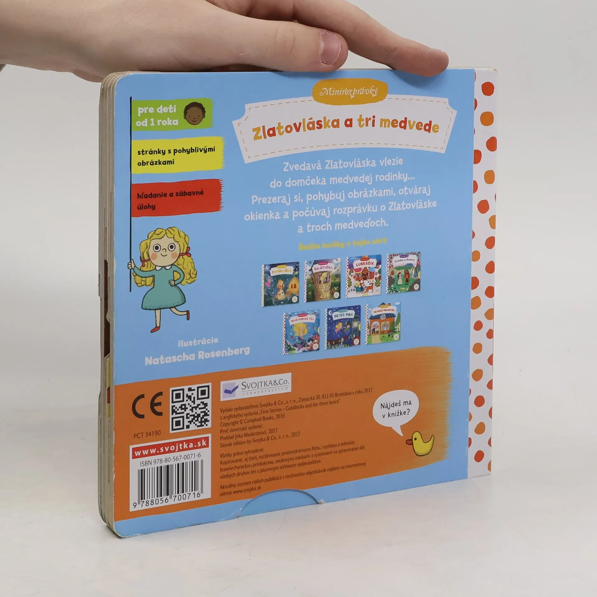 Táto veršovaná minirozprávka je určená deťom od jedného roka. Má pevné stránky s pohyblivými prvkami, takže si deti môžu príbeh oživiť a precvičiť si pršteky.