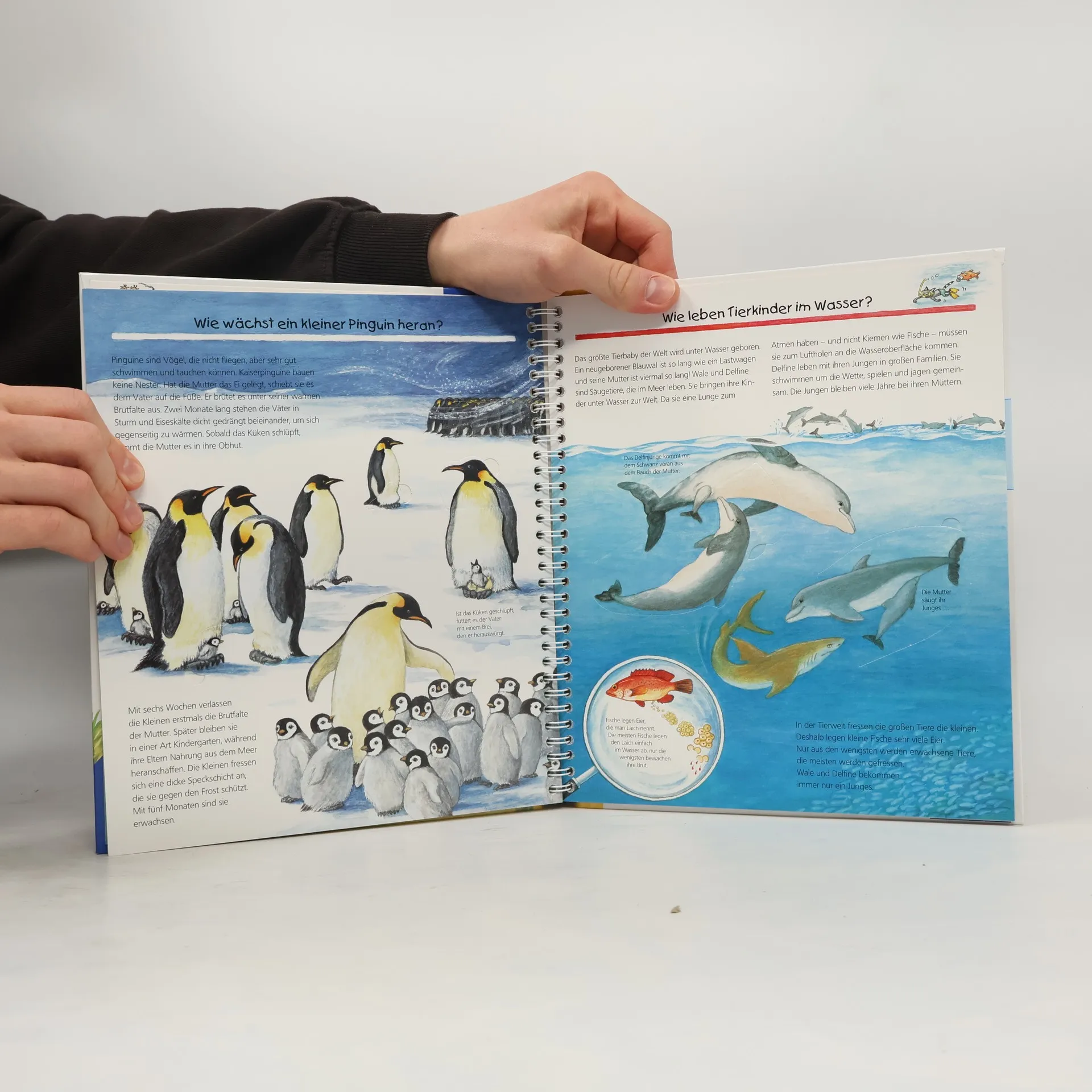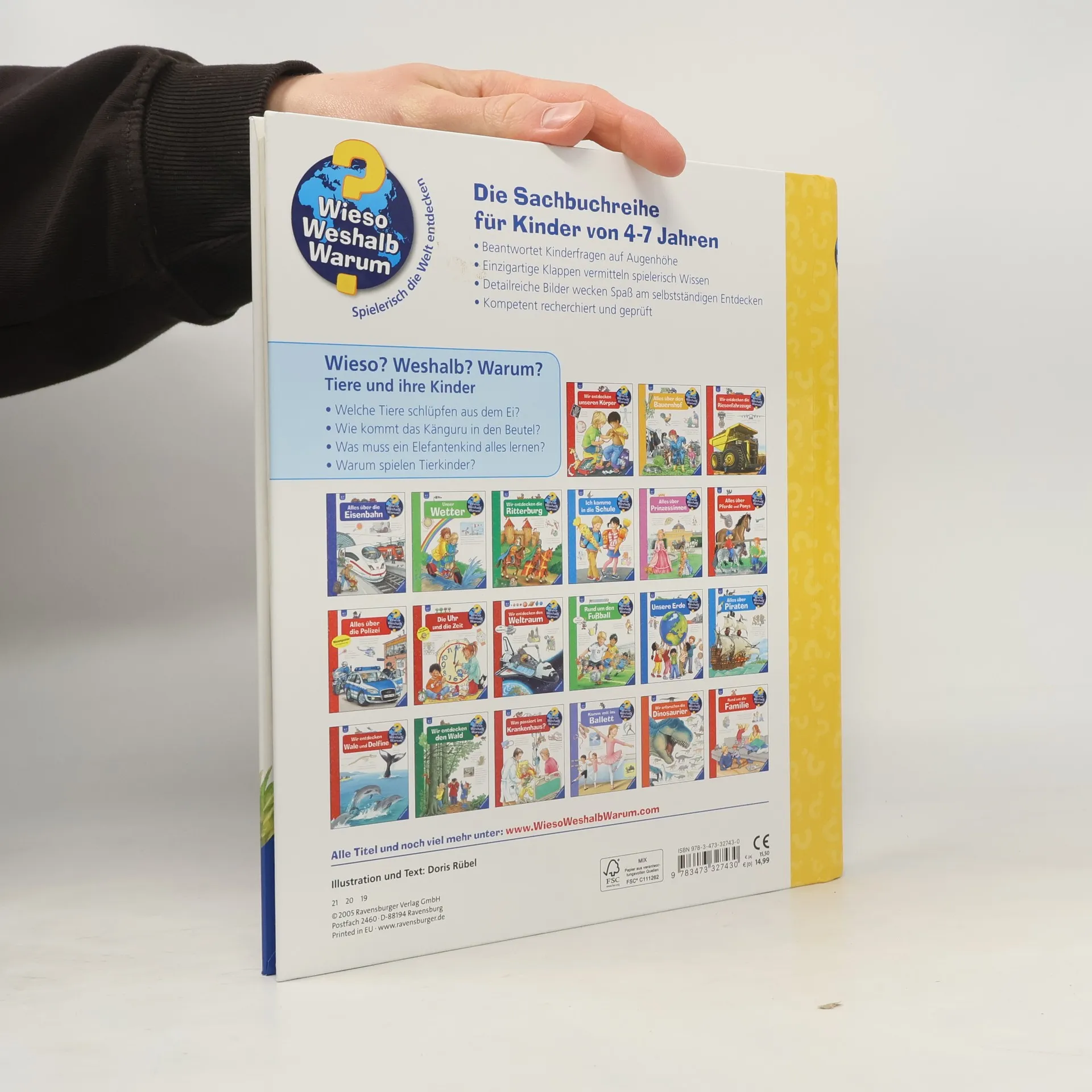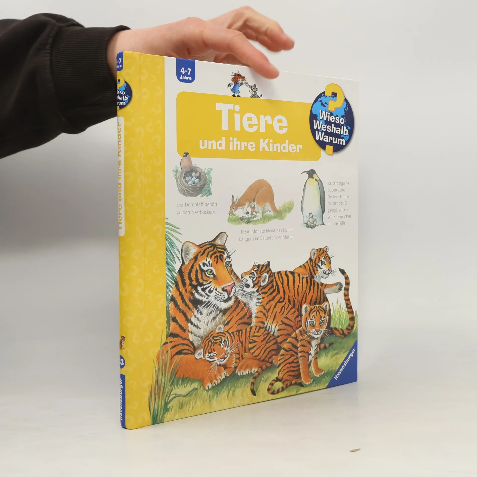Oh, wie süß! Von der Hauskatze bis zum Löwen, vom Krokodil bis zum Delfin – hier versammeln sich Tierbabys aus aller Welt. Wie werden sie geboren? Gehen Tierkinder auch in den Kindergarten? Und wer schlüpft aus dem Ei? Mit Klappen schauen Kinder in die Nester, Höhlen und Baue verschiedener Tiere. Sie erfahren, wie und warum viele Tiereltern ihre Kinder tragen oder auch warum Tierbabys so verspielt sind. Wieso? Weshalb? Warum? Die Sachbuchreihe für Kinder von 4–7 Jahren Jeden Tag entdecken Kinder etwas Neues – da kommen viele Fragen auf. Warum sind die Dinosaurier ausgestorben? Wo ist die Sonne in der Nacht? Wozu brauchen wir das Blut? Die beliebte Sachbuchreihe Wieso? Weshalb? Warum? gibt Kindern Antworten auf Augenhöhe. Dabei werden die unterschiedlichsten Themen aus der Alltags- und Interessenswelt der Kinder altersgerecht und mit viel Liebe zum Detail unter die Lupe genommen. Detailreiche Bilder, verständliche Sachtexte und überraschende Klappen, die Bewegungen oder Abläufe veranschaulichen und hinter die Dinge blicken lassen, ermöglichen Kindern, sich ihre Themen selbst zu erschließen. Der Spaß am eigenhändigen Entdecken, die liebevolle Umsetzung und die qualitativ hochwertige Ausstattung garantieren langanhaltende Freude an jedem einzelnen Buch.