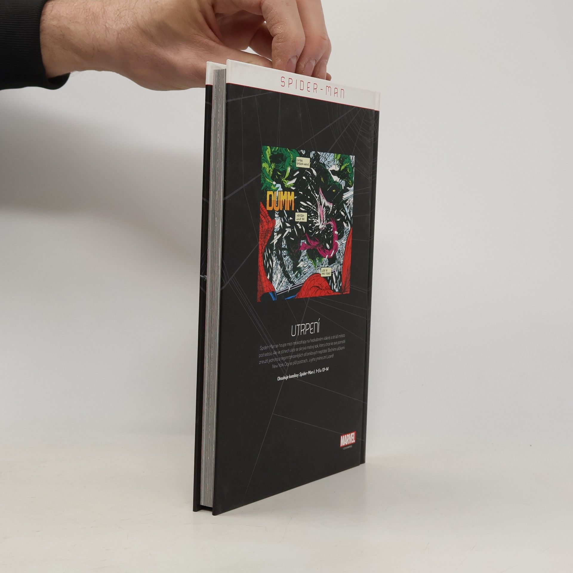 Spider-Man se houpe mezi mrakodrapy na hedvábném vlákně a stráží město pod sebou. Ale ve stínech ulice se skrývá mstivý sok, který chce ke své pomstě zneužít jednoho z nejsmrtonosnějších síťomilových nepřátel. Bočními uličkami New York City se plíží postrach... a jeho jméno zní Lizard! Obsahuje komiksy Spider-Man č. 1-5 a 13-14.