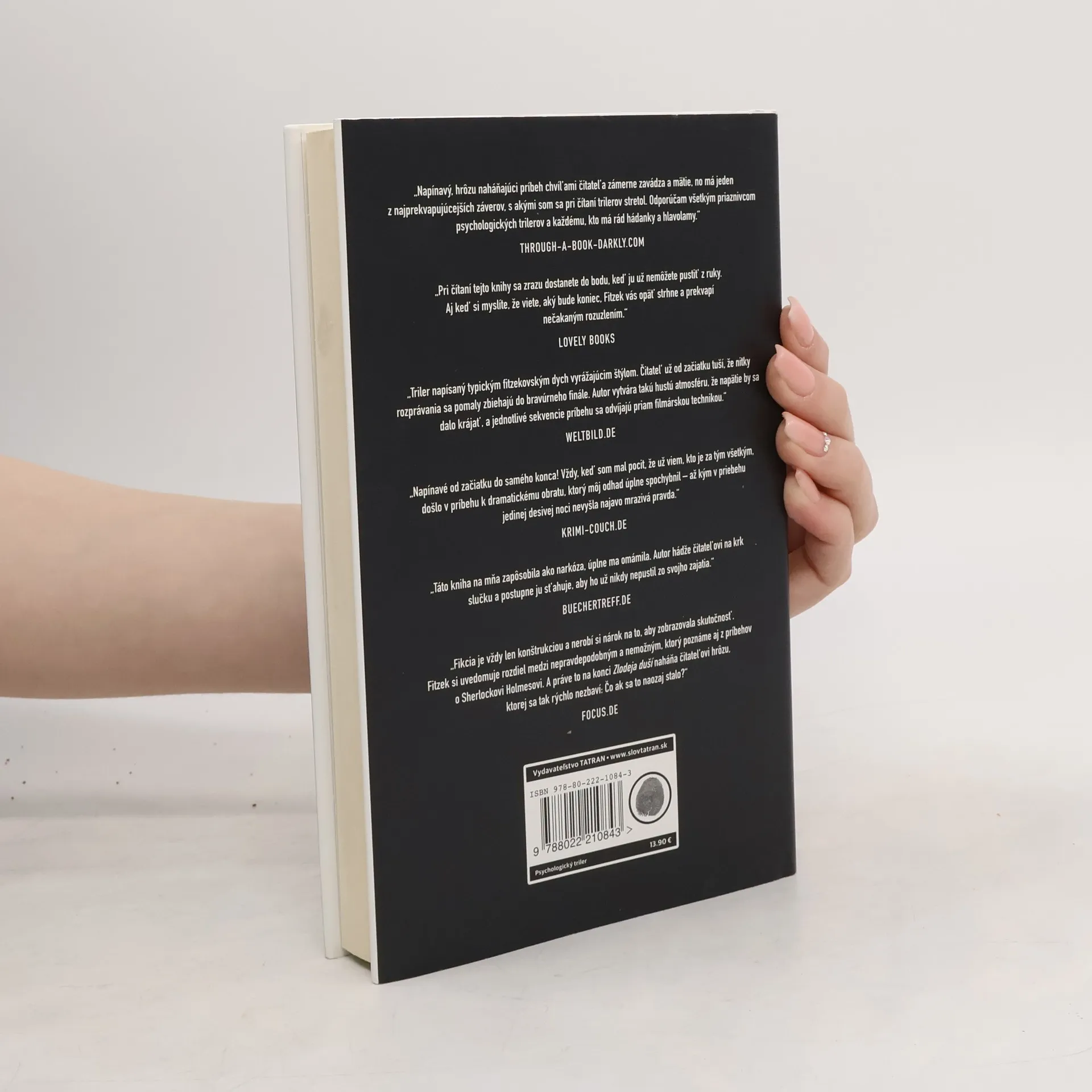 Klasický scenár: miesto odrezané od okolitého sveta, kde sú ľudia vystavení napospas chladnokrvnému zločincovi. Musia sa zomknúť, spojiť sily a čeliť nebezpečenstvu dovtedy, kým medzi sebou neodhalia páchateľa alebo kým nepríde pomoc zvonka. Túto dramatickú situáciu rozohrala už Agatha Christie v známom románe A neostal ani jeden, kde je miestom zločinu prepychové sídlo na pustom ostrove a kde postupne, tak ako ubúda černoškov v detskej riekanke, ubúda aj hostí, ktorých vraždí šialený vrah. Presne podľa tohto klasického receptu postupuje Sebastian Fiztek v trileri Zlodej duší. Miestom, ktoré poveternostné podmienky odtrhli od zvyšku sveta, je psychiatrická klinika, a pôvodcom všetkého zla a hrôzy je perfídny psychopat. V minulosti mu padli za obeť tri mladé ženy, uniesol ich a po týždni zajatia ich prepustil na slobodu. Všetky tri sú psychicky zlomené, pôsobia dojmom, akoby boli pochované vo vlastnom tele. Nik nedokáže preniknúť do ich duše, jedna v dôsledku hroznej traumy dokonca zomrie. Neznámy páchateľ nájde ďalšie pôsobisko na psychiatrickej klinike a práve tam si vyberie štvrtú obeť. Pacient Caspar napriek svojej amnézii verí, že pozná nebezpečného zločinca, ktorý to má všetko na svedomí. Vrah vyčíňa ďalej, pri každej obeti zanechá hádanku, ktorú musí zvyšok obyvateľov kliniky rozlúštiť, ak chce túto hru na mačku a myš prežiť.