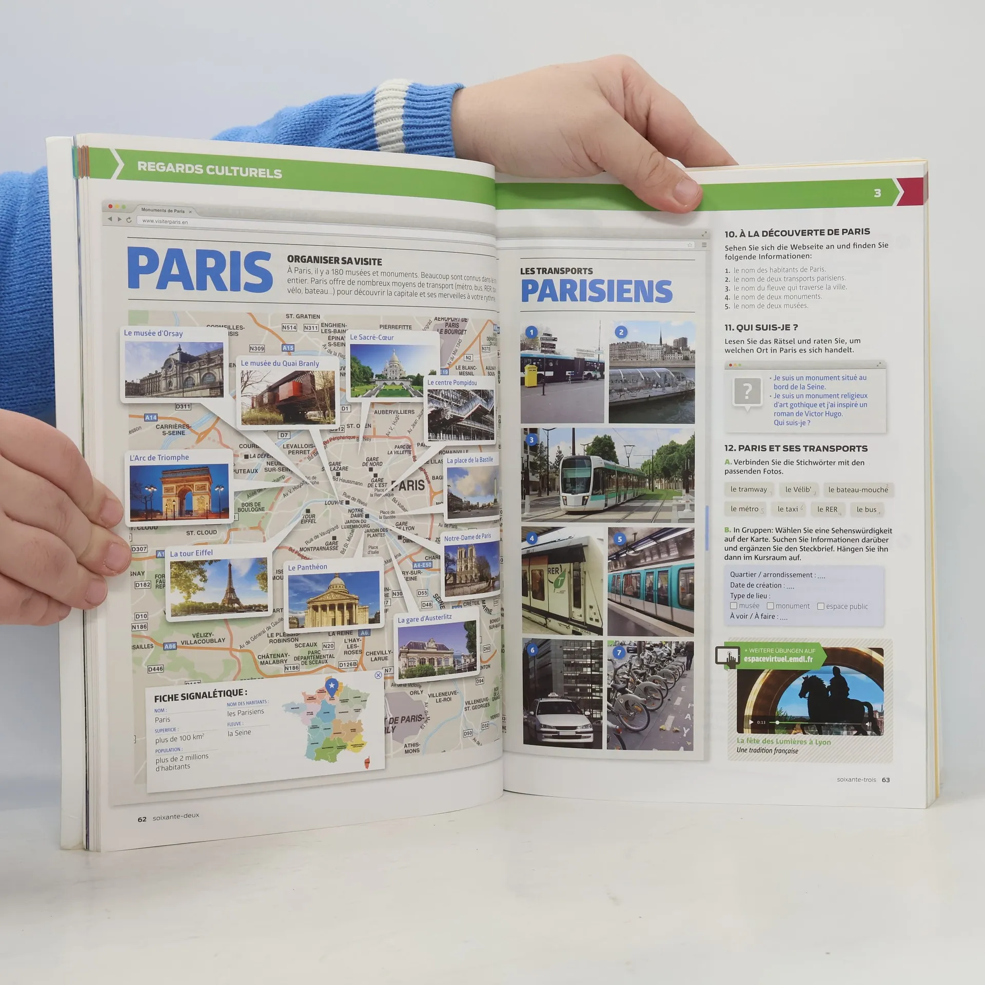 Die deutsche Ausgabe von Entre nous bietet: alles in einem Band: Kursbuch, Übungsheft und Audio-CD didaktische Einheiten, die jeweils in vier Lernetappen gegliedert sind: Découverte, Observation et entraînement, Regards culturels et Tâches finales induktives und schrittweises Erarbeiten von Grammatik, Wortschatz und Phonetik zahlreiche Aufgaben und Aktivitäten zur Interaktion im Kurs vielfältige authentische Dokumente (in Texten, Bildern, Video und Audio) eine kulturelle und soziokulturelle Annäherung an den französischsprachigen Raum ENTRE NOUS ist ein lebendiges Französischlehrwerk, das effizient auf die Bedürfnisse der Lernenden eingeht. Es ist klar strukturiert und bietet in jeder Lektion zahlreiche lernerzentrierte Aktivitäten, die in motivierende Abschlussaufgaben münden.