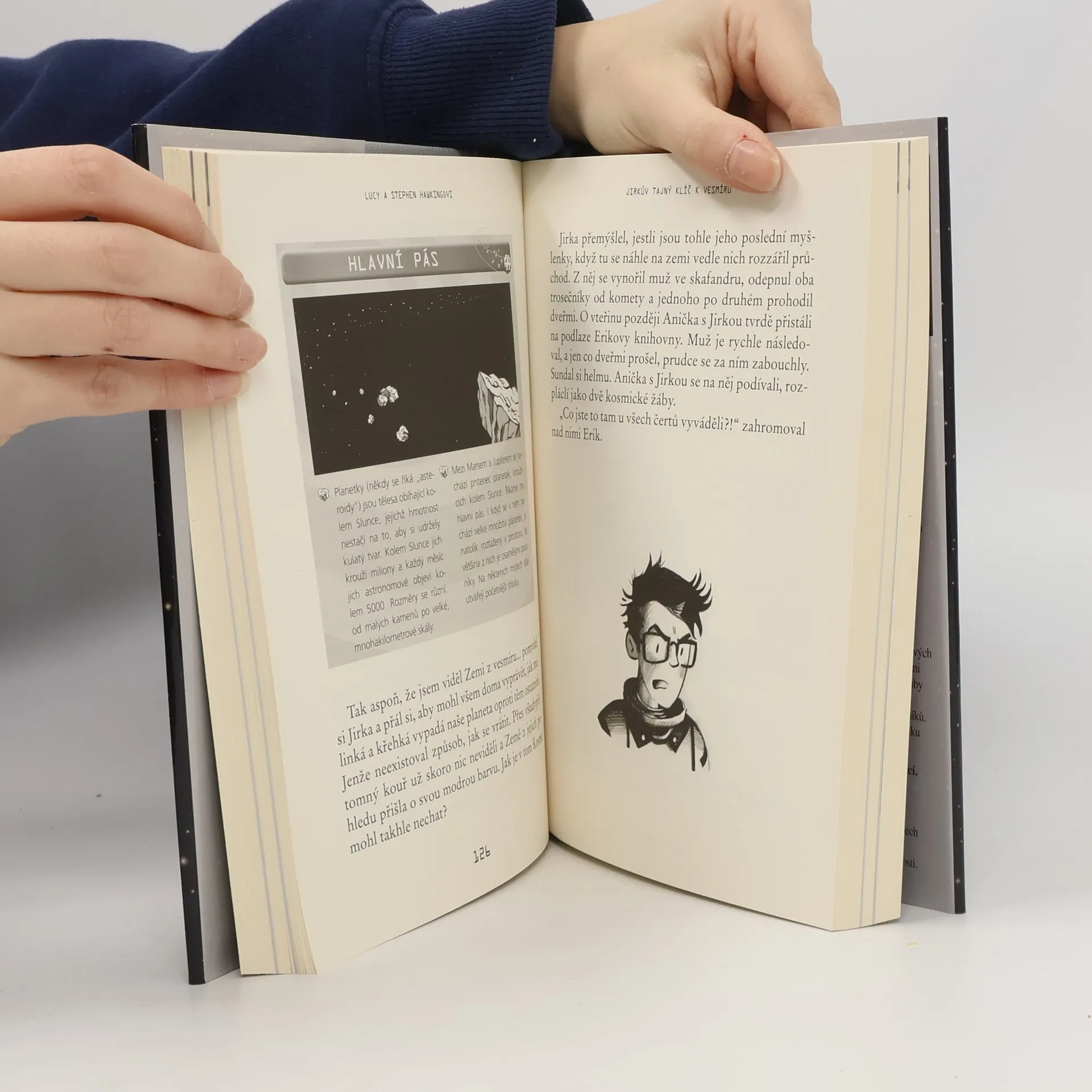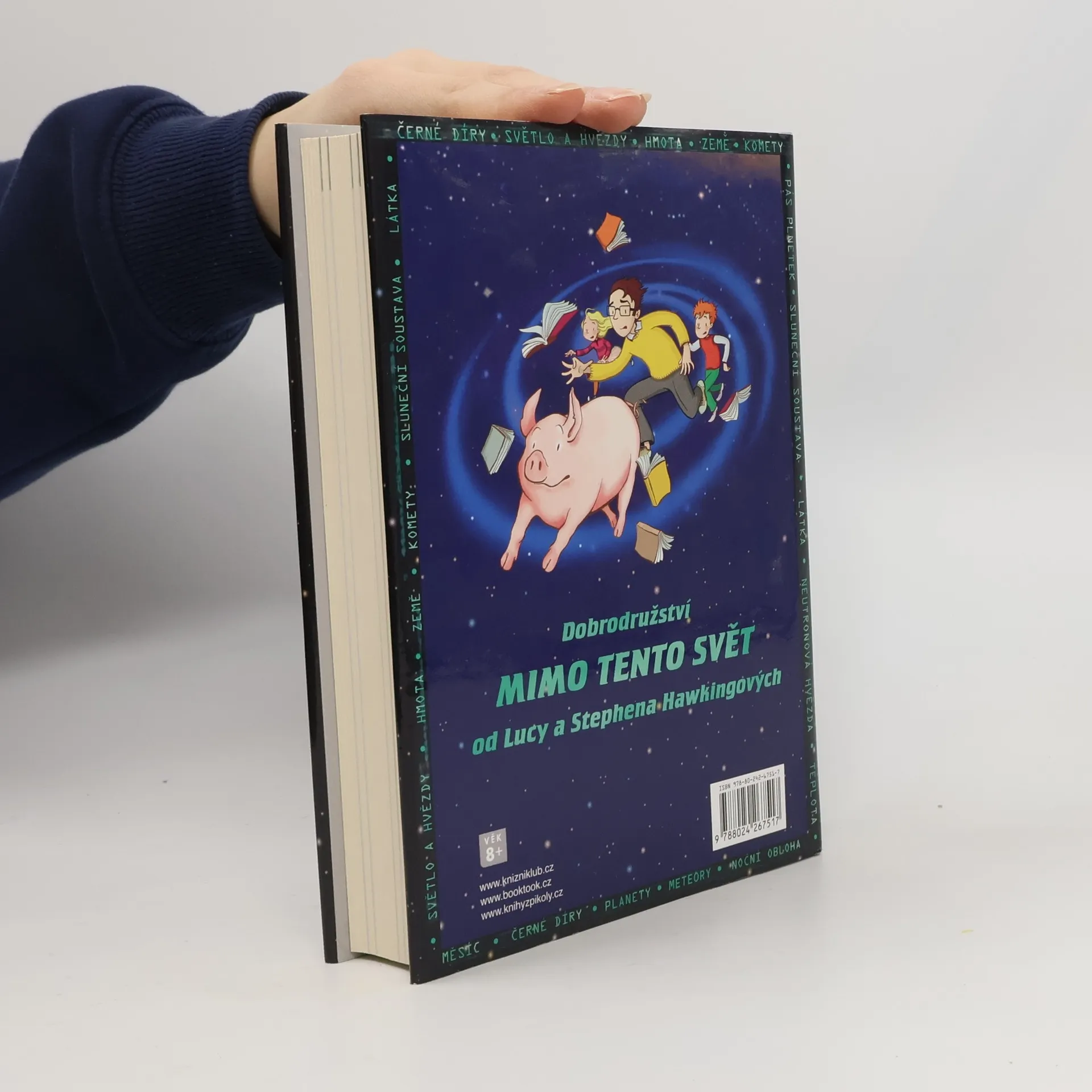 Dobrodružná knížka o vesmíru z pera jednoho z nejvýznamnějších fyziků současnosti Stephena Hawkinga a jeho dcery Lucy. Jedinou radostí Jirkova nudného života je jeho prasátko Bedřich. Když se prase ztratí a Jirka se ho vydá hledat, nemá ani tušení, jaké dobrodružství ho čeká. Do sousedního opuštěného domu se nastěhovala opravdu povedená rodinka! Bláznivě oblečená Anička a její tatínek Erik, trochu pomatený vědec, slibují nevídané zážitky. Erik vlastní nejvýkonnější počítač na světě, který dokáže vyslat lidi do vesmíru. Jirka se tak vypraví na nevšední cestu na kometě mezi planetami a podívá se až na samotný okraj sluneční soustavy. Zdá se však, že vesmírná expedice bude pořádně riskantní. Na zvědavce ze světa lidí tu totiž čekají záludné a maximálně nebezpečné černé díry. Spoustu důležitých poznatků o našem vesmíru, umně skrytých ve veselém dobrodružném příběhu, doprovází množství barevných fotografií přímo z kosmu.