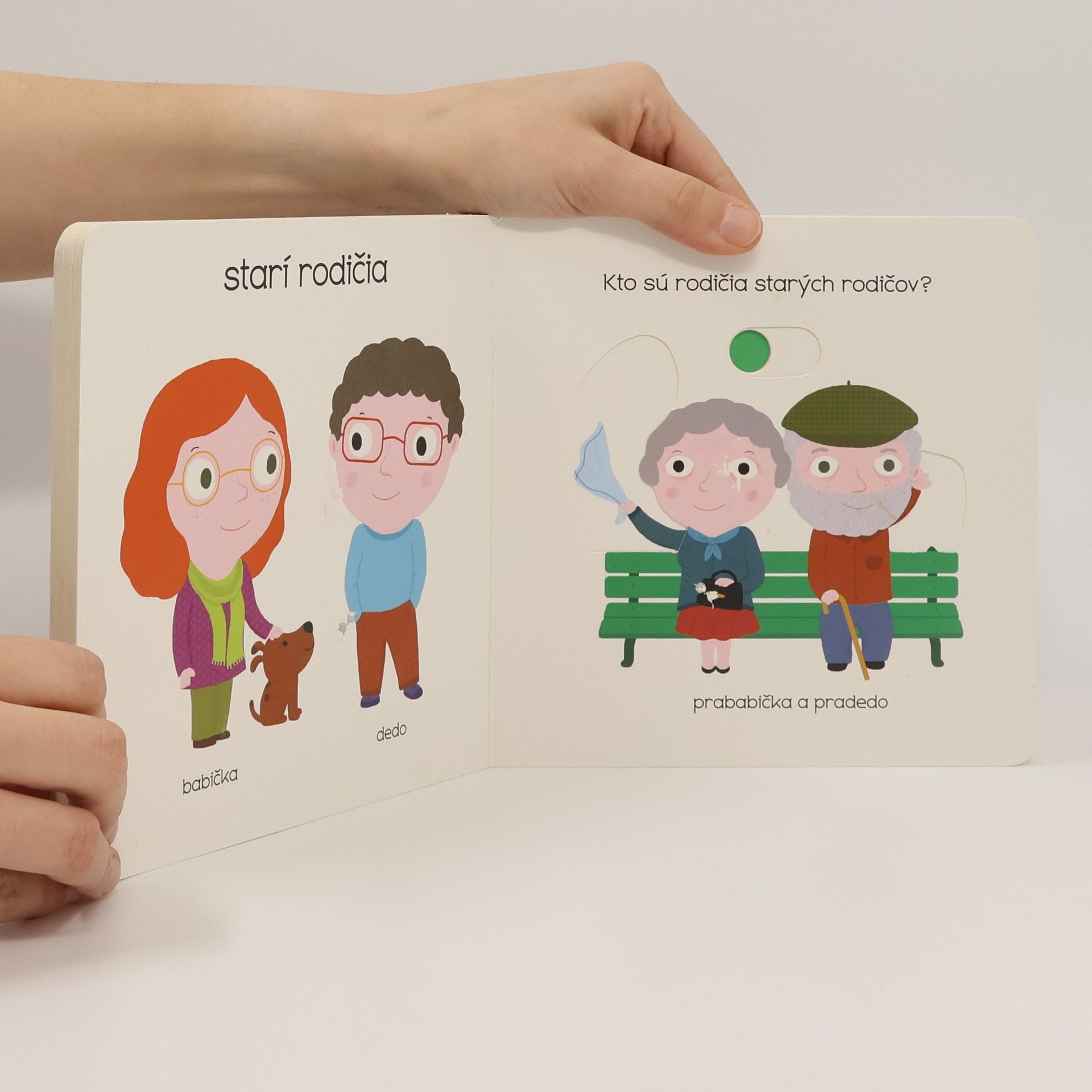 Máš velkú rodinu? Nauč sa, ako sa hovorí všetkým jej členom! Leporelo pre najmenšie deti s posuvnými prvkami a pestrými ilustráciami.