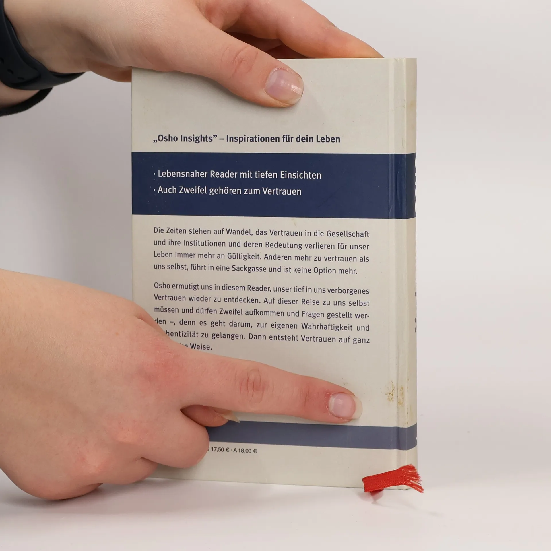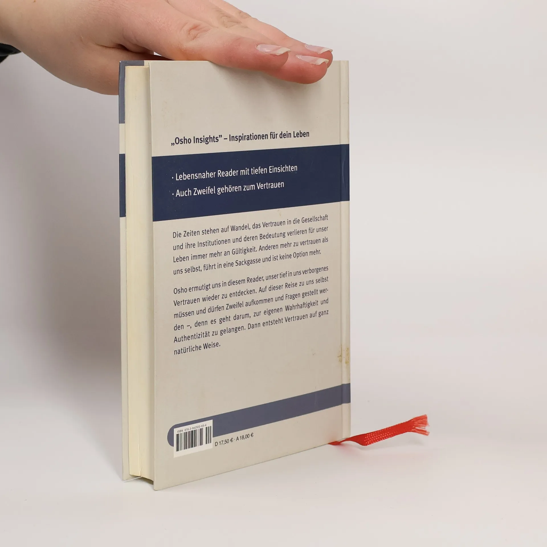 . Lebensnaher Reader mit tiefen Einsichten . Auch Zweifel gehören zum Vertrauen . Nur so findet man Spontaneität und Lebensfreude wieder Die Zeiten stehen auf Wandel, das Vertrauen in die Gesellschaft und ihre Institutionen und deren Bedeutung verlieren für unser Leben immer mehr an Gültigkeit. Anderen - Ideologien oder Religionen - mehr zu trauen als uns selbst, führt in eine Sackgasse und ist keine Option mehr. Osho ermutigt uns in diesem Reader, dieses angeborene tief in uns verborgene Vertrauen wieder zu entdecken. Auf dieser Reise zu uns selbst müssen und dürfen Zweifel aufkommen und Fragen gestellt werden ... denn es geht darum, zur eigenen Wahrhaftigkeit und Authentizität zu gelangen. Dann ist Vertrauen eine natürliche Folge davon.