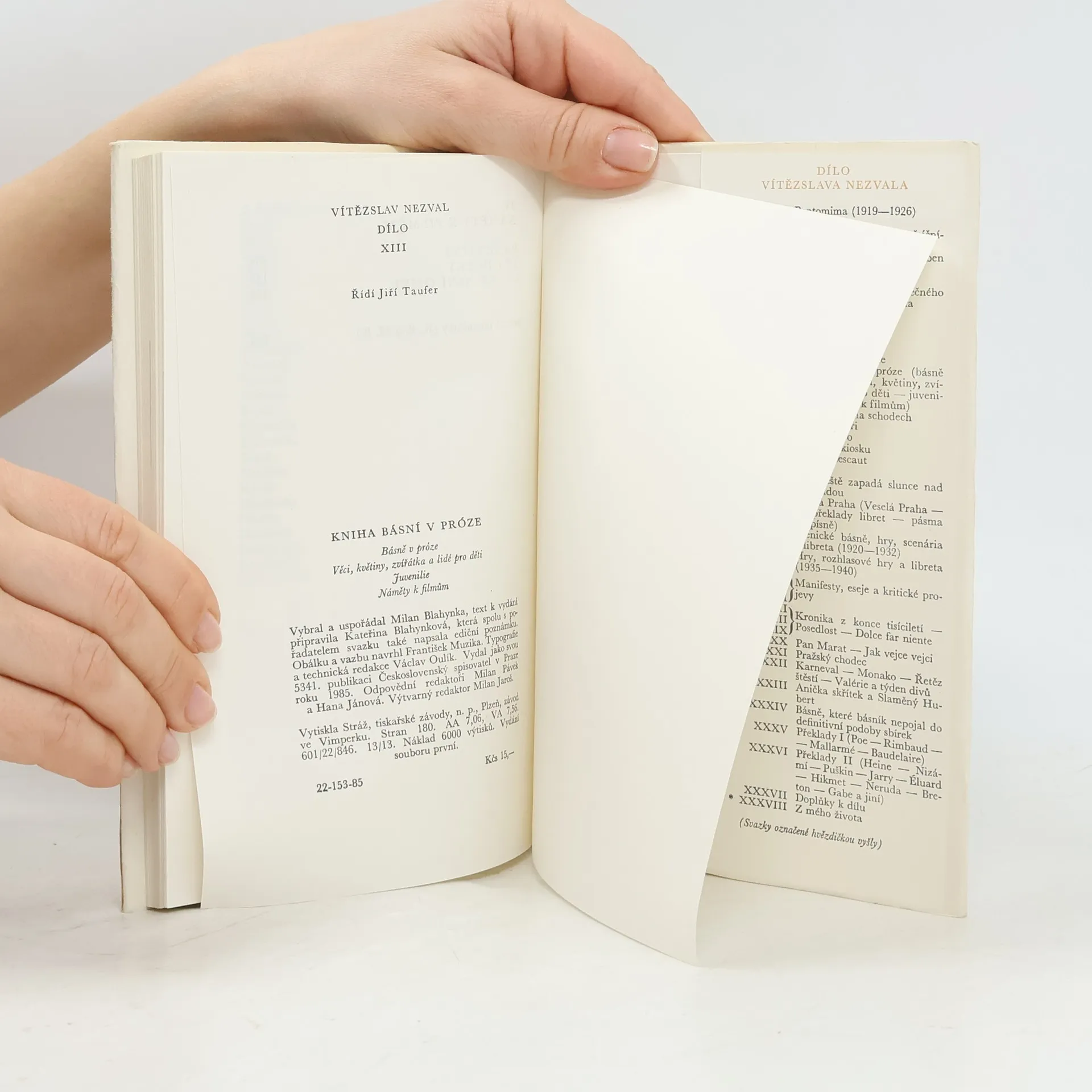 Básně v próze – Věci, květiny, zvířátka a lidé pro děti – Juvenilie – Náměty k filmům. Praha: Čs. spisovatel, 1985. 180 s. Dílo Vítězslava Nezvala; sv. XIII. Náklad 6 000 výtisků. Vybral a uspořádal Milan Blahynka, text k vydání připravila Kateřina Blahynková, která spolu s pořadatelem svazku také napsala ediční poznámku. Obálku a vazbu navrhl František Muzika. Typografie Václav Oulík.