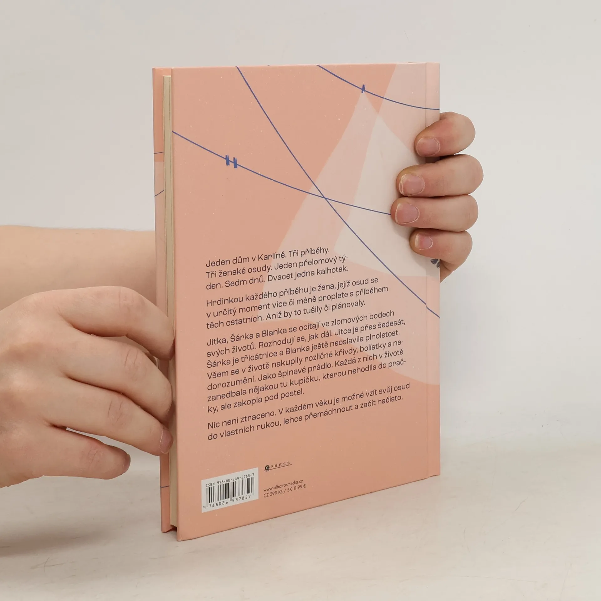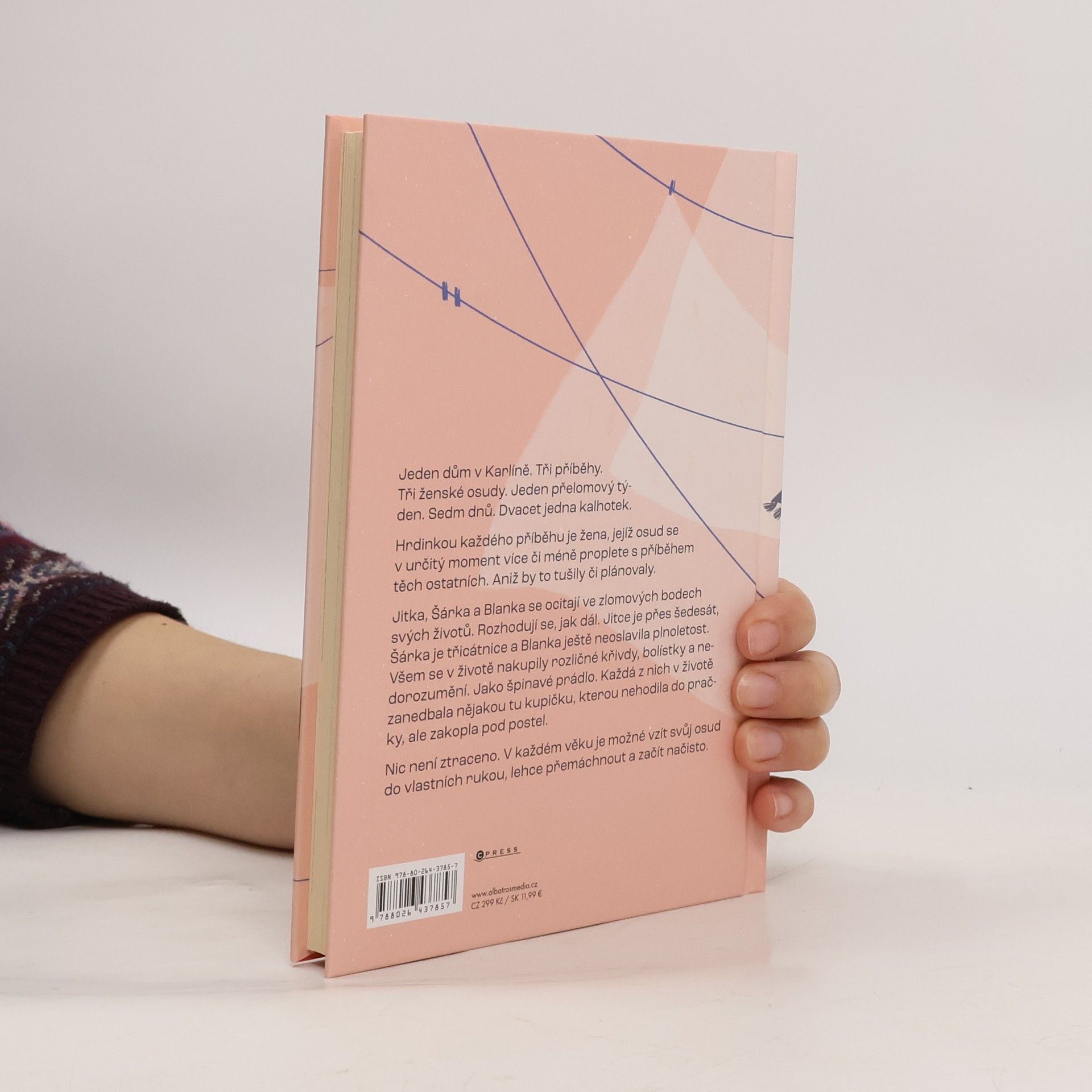 Jeden dům v Karlíně. Tři příběhy. Jeden přelomový týden. Sedm dnů. Dvacet jedna kalhotek. Hrdinkou každého příběhu je žena, jejíž osud se v určitý moment více či méně proplete s příběhem těch ostatních. Aniž by to tušily či plánovaly. Jitka, Šárka a Blanka se ocitají ve zlomových bodech svých životů. Rozhodují se, jak dál. Jitce je přes šedesát, Šárka je třicátnice a Blanka ještě neoslavila plnoletost. Všem se v životě nakupily rozličné křivdy, bolístky a nedorozumění. Jako špinavé prádlo. Každá z nich v životě zanedbala nějakou tu kupičku, kterou nehodila do pračky, ale zakopla pod postel. Nic není ztraceno. V každém věku je možné vzít svůj osud do vlastních rukou, lehce přemáchnout a začít načisto. Třetí knížka mladé české autorky vypráví o drzých hrách osudu a ženských duších s humorem, psychologickým vhledem a lehkostí.
