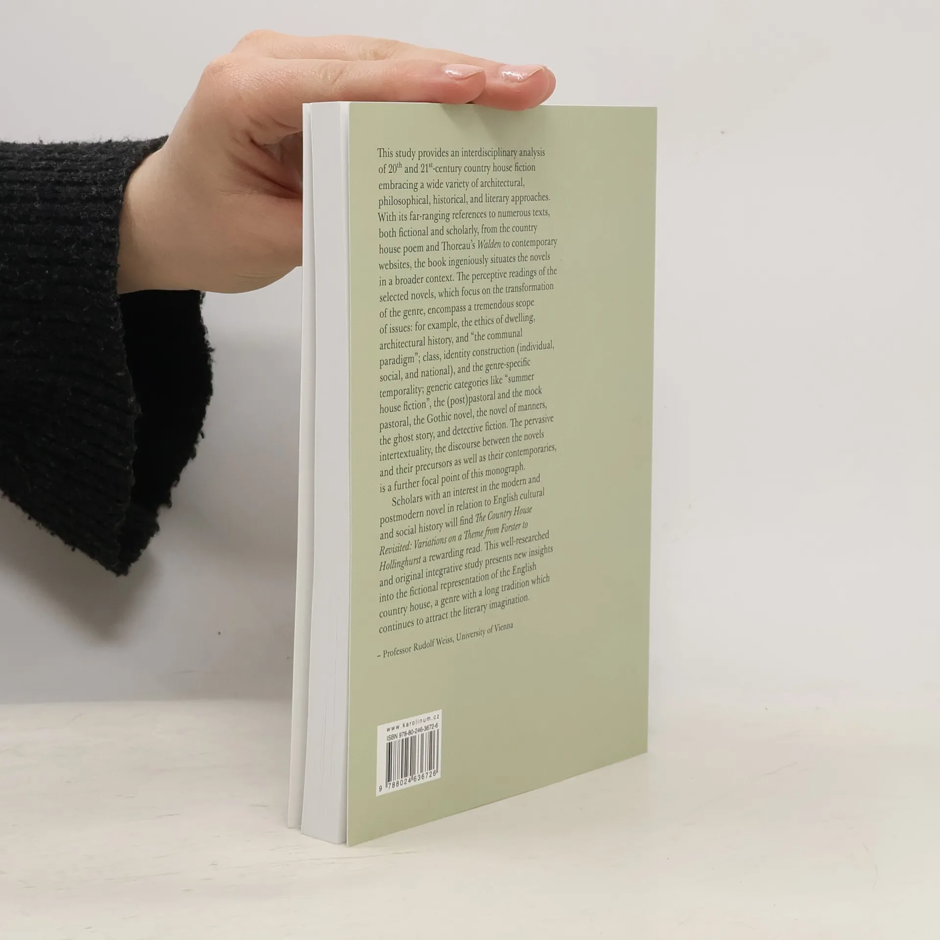 Monografie se věnuje literatuře spojené s anglickým venkovským sídlem, a to zejména dílům autorů 20. a 21. století, jako jsou E. M. Forster, Evelyn Waugh, Iris Murdoch, Alan Hollinghurst a Sarah Waters. Venkovské sídlo je nahlíženo v širším společenském a kulturním kontextu, včetně soudobého vývoje architektury. Šíře a rozmanitost literárních obrazů odráží rozrůznění fyzické podoby venkovského sídla a dovoluje zahrnout jak jeho menší varianty, tak i pozůstatky vznosných paláců na pokraji zničení. Interpretace v rámci soudobé prózy, architektury a poetiky prostoru umožňuje venkovskému sídlu, vzhledem k jeho výjimečným evokačním a soustředivým vlastnostem, akcentovat různé podoby bydlení. Následkem toho mohou být literární ztvárnění současně chápána jako předobrazy i odrazy soudobého žití.