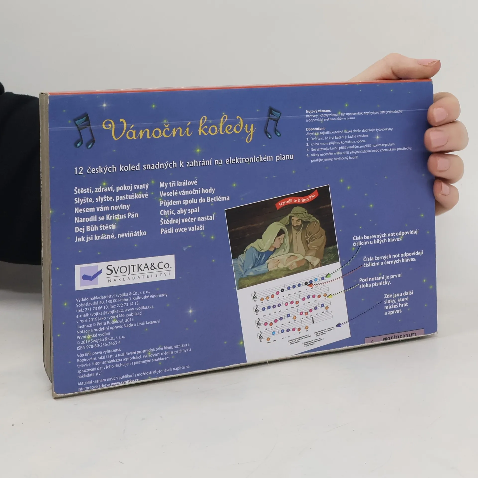 Tato knížka s piankem a půvabnými ilustracemi obsahuje 12 oblíbených vánočních koled. Snadné přehrání umožnují různobarevné číslice nad klávesami a notami.