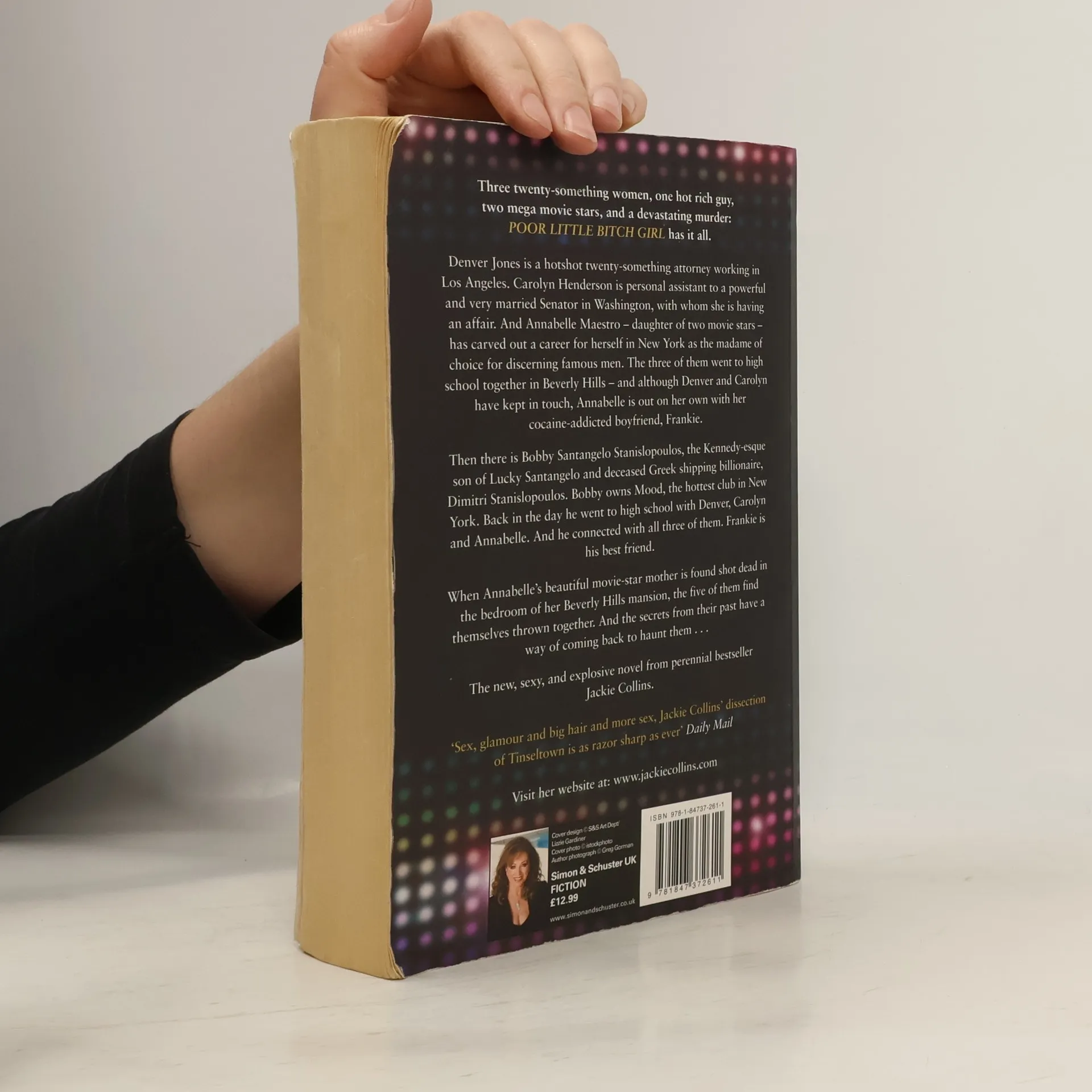 Three twenty-something women, one hot rich guy, two mega movie stars, and a devastating murder. Poor Little Bitch Girl has it all. Denver Jones is a hotshot twenty-something attorney working in L.A. Carolyn Henderson is a personal assistant to a powerful and very married senator in Washington with whom she is having an affair. And Annabelle Maestro—the daughter of two movie stars—has carved out a career for herself in New York as the madam of choice for discerning famous men. The three of them went to high school together in Beverly Hills, and although Denver and Carolyn have kept in touch, Annabelle is out on her own with her cocaine-addicted boyfriend, Frankie. Then there is Bobby Santangelo Stanislopolous, the Kennedy-esque son of Lucky Santangelo and deceased Greek shipping billionaire Dimitri Stanislopolous. Bobby owns Mood, the hottest club in New York. Back in the day, he went to high school with Denver, Carolyn, and Annabelle. And he connected with all three of them. Plus, Frankie is his best friend. When Annabelle’s beautiful movie-star mother is found shot to death in the bedroom of her Beverly Hills mansion, the five of them find themselves thrown together…and secrets from the past have a way of coming back to haunt everyone. Poor Little Bitch Girl is a new, sexy, and explosive novel from perennial best-seller Jackie Collins.