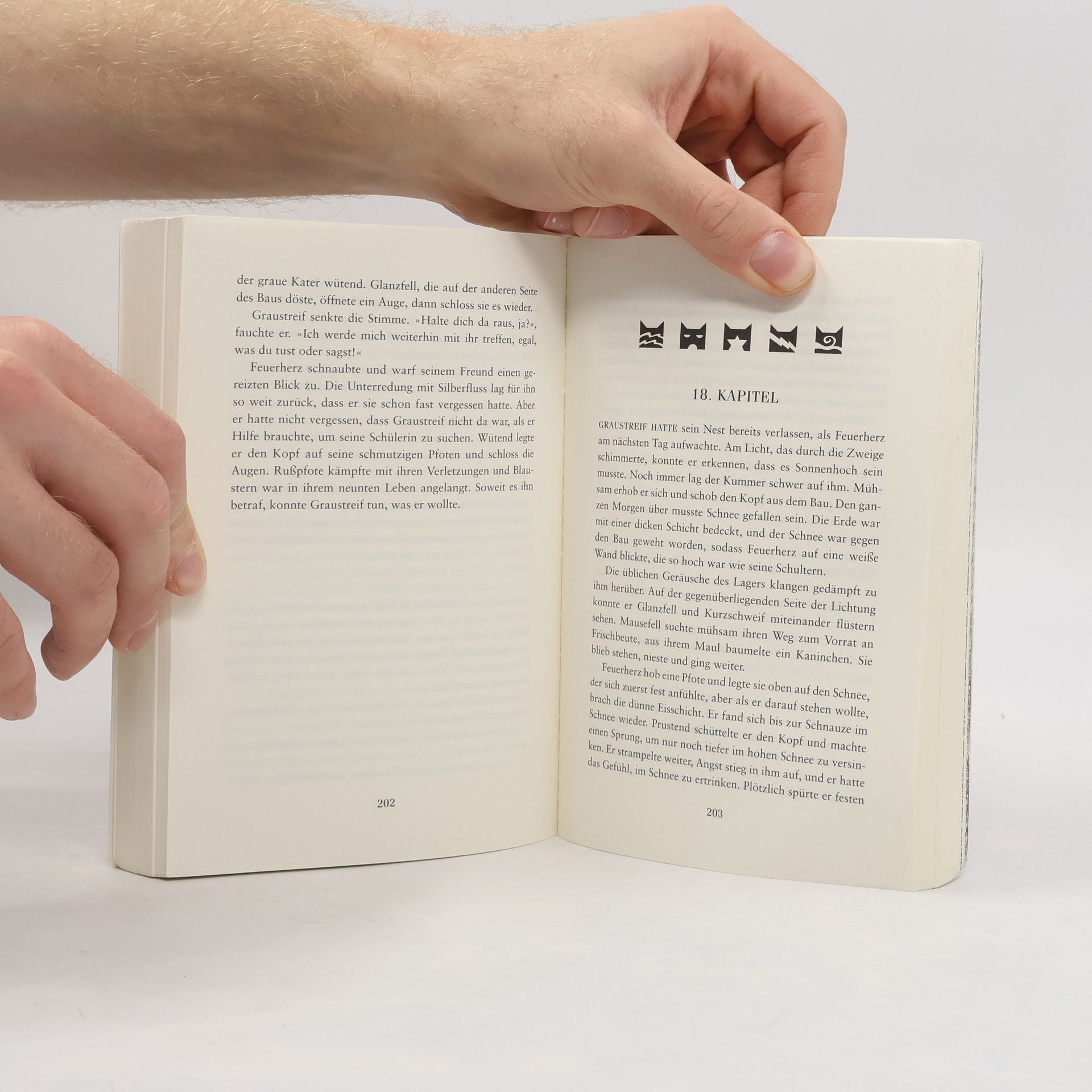 Aus Feuerpfote, dem jungen Schüler des DonnerClans, ist Feuerherz geworden, ein mutiger Krieger. Als der Winter kommt, spitzt sich die Situation im Wald zu: Hunger und Not, geheime Bündnisse und Machtgier bedrohen den Frieden zwischen den vier KatzenClans. Ausgerechnet jetzt lässt sich Feuerherz’ bester Freund Graustreif auf eine gefährliche Liebesbeziehung ein. Die Freundschaft der beiden wird auf eine harte Probe gestellt …