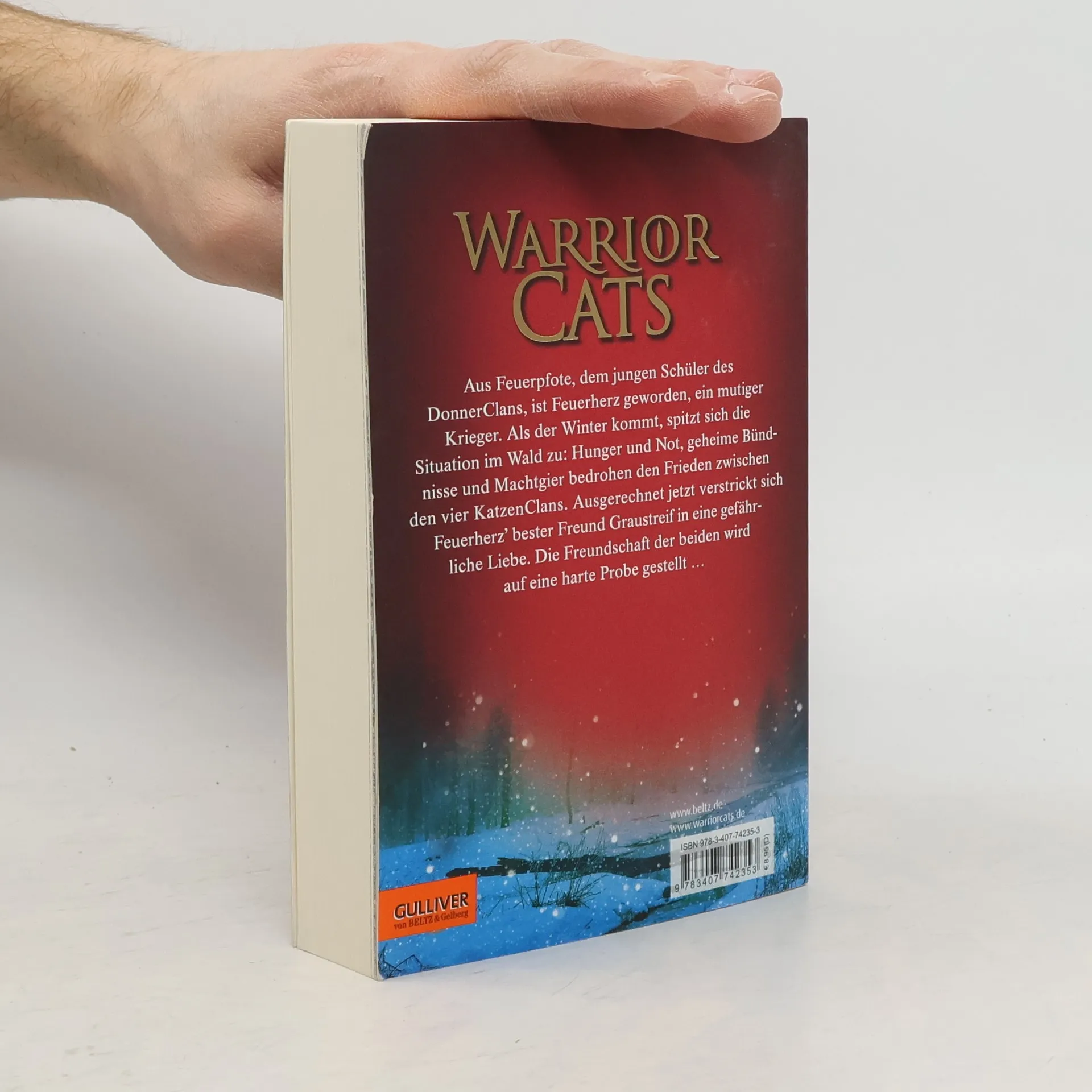 Aus Feuerpfote, dem jungen Schüler des DonnerClans, ist Feuerherz geworden, ein mutiger Krieger. Als der Winter kommt, spitzt sich die Situation im Wald zu: Hunger und Not, geheime Bündnisse und Machtgier bedrohen den Frieden zwischen den vier KatzenClans. Ausgerechnet jetzt lässt sich Feuerherz’ bester Freund Graustreif auf eine gefährliche Liebesbeziehung ein. Die Freundschaft der beiden wird auf eine harte Probe gestellt …