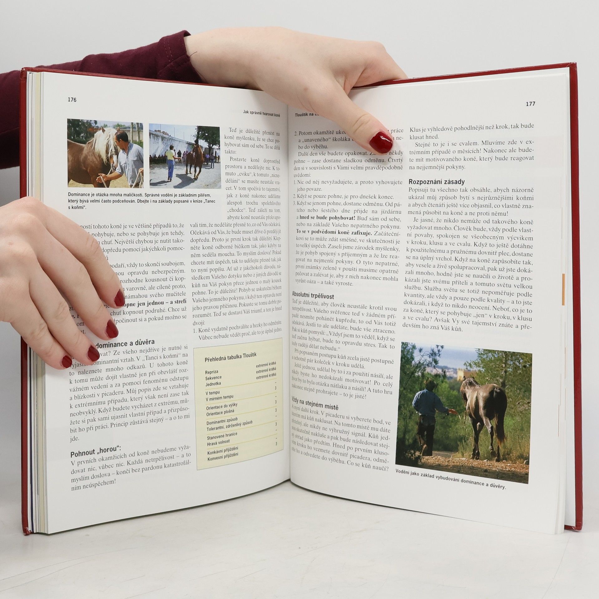 Dokonalé poznání koně, opatrný přechod k práci bez sedla a pod sedlem, rozdělení typů koní do 26 charakterových skupin.