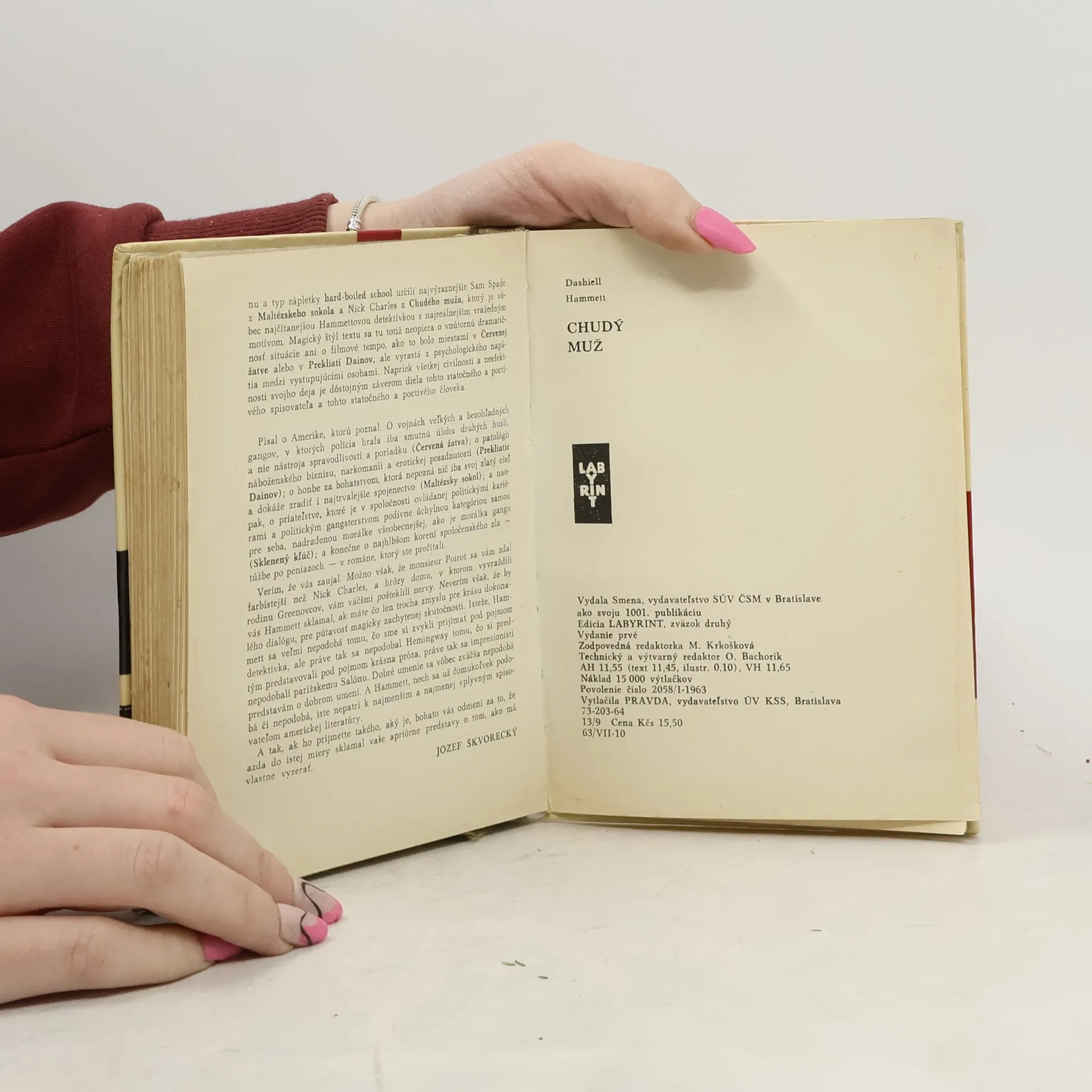 Autor je spolu s R. Chandlerom zakladateľom tvrdej školy amerických detektívok. Dej tejto sa odohráva medzi Vianocami a Novým rokom koncom 20-tych rokov minulého storočia v New Yorku, kam Nick príde sviatkovať. Tu sa stretáva so starými známymi z čias svojej kariéry detektíva a nechtiac sa zapletiedo vyšetrovania dvoch záhadných vrážd. Klasická detektívka, plná šarmu, humoru a nečakaných prekvapení.
