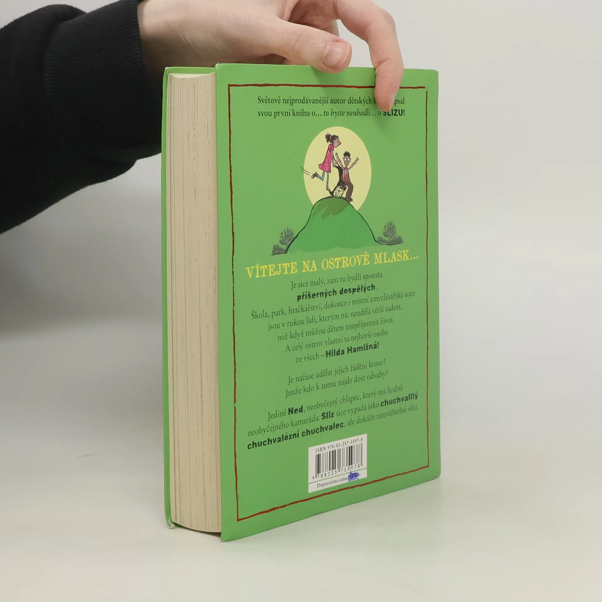 Vítejte na jednom zvláštním ostrově… Je malý, hezký, jen kdyby tu nebydlela ta spousta příšerných dospělých. Školu, park, ba i hračkářství mají na starost lidé, kterým nic neudělá větší radost, než když můžou nějakému dítěti znepříjemnit život. Dokonce i místní zmrzlinářské auto patří zlotřilému manželskému páru, který dětem zmrzlinu… jen si to představte… krade! A celý ostrov vlastní ta nejhorší osoba ze všech – teta Hilda Hamižná! Někdo tomu už musí udělat přítrž! Ale kdo najde dost odvahy? Jedině Ned – je sice na vozíčku, ale jinak vládne neobyčejnou superschopností. SLIZOMOCÍ! David Walliams je úkaz: děti jeho knihy milují, z každé se stane okamžitě bestseller.