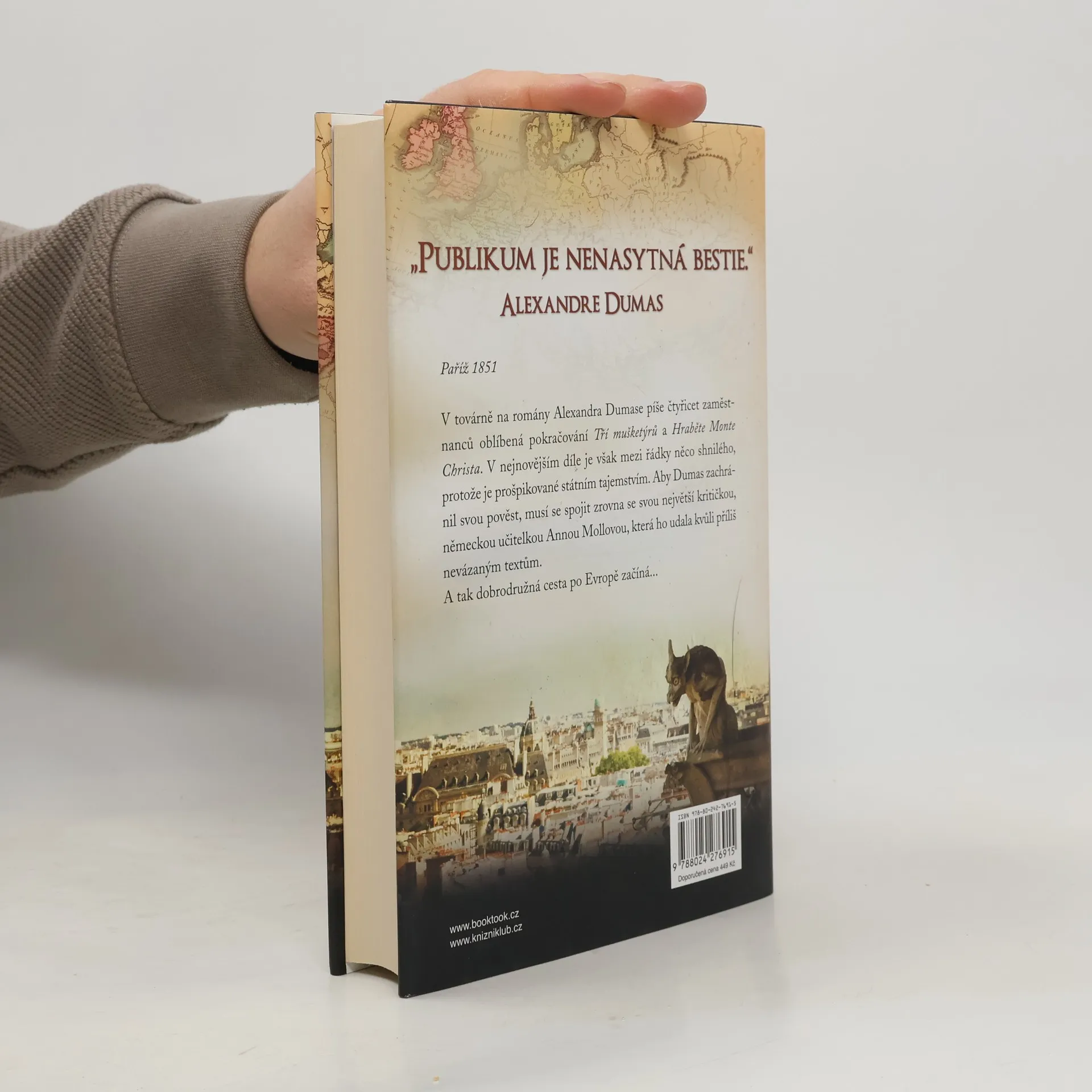 Paříž 1851. V továrně na romány Alexandra Dumase píše čtyřicet zaměstnanců oblíbená pokračování Tří mušketýrů a Hraběte Monte Christa. V nejnovějším díle je však mezi řádky něco shnilého, protože je prošpikované státním tajemstvím. Aby Dumas zachránil svou pověst, musí se spojit zrovna se svou největší kritičkou, německou učitelkou Annou Mollovou, která ho udala kvůli příliš nevázaným textům. A tak jejich dobrodružná cesta po Evropě začíná Tento román Dirka Husemanna získal v roce 2020 v Německu titul KNIHA ROKU.