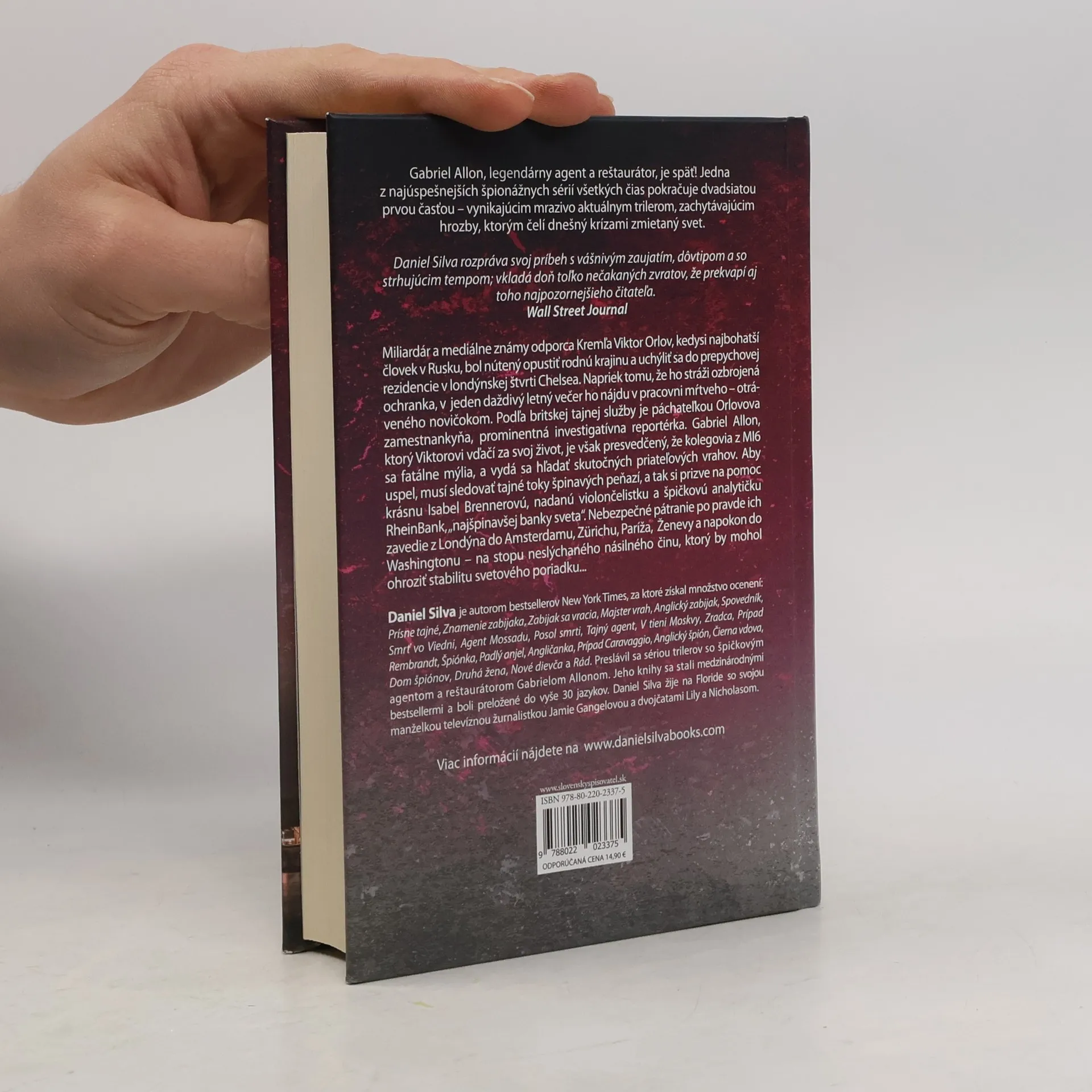 Gabriel Allon, legendárny agent a reštaurátor, je späť! Jedna z najúspešnejších špionážnych sérií všetkých čias pokračuje dvadsiatou prvou časťou – vynikajúcim mrazivo aktuálnym trilerom, zachytávajúcim hrozby, ktorým čelí dnešný krízami zmietaný svet. Miliardár a mediálne známy odporca Kremľa Viktor Orlov, kedysi najbohatší človek v Rusku, bol nútený opustiť rodnú krajinu a uchýliť sa do prepychovej rezidencie v londýnskej štvrti Chelsea. Napriek tomu, že ho stráži ozbrojená ochranka, v jeden daždivý letný večer ho nájdu v pracovni mŕtveho – otráveného novičokom. Podľa britskej tajnej služby je páchateľkou Orlovova zamestnankyňa, prominentná investigatívna reportérka. Gabriel Allon, ktorý Viktorovi vďačí za svoj život, je však presvedčený, že kolegovia z MI6 sa fatálne mýlia, a vydá sa hľadať skutočných priateľových vrahov. Aby uspel, musí sledovať tajné toky špinavých peňazí, a tak si prizve na pomoc krásnu Isabel Brennerovú, nadanú violončelistku a špičkovú analytičku RheinBank, „najšpinavšej banky sveta“. Nebezpečné pátranie po pravde ich zavedie z Londýna do Amsterdamu, Zürichu, Paríža, Ženevy a napokon do Washingtonu – na stopu neslýchaného násilného činu, ktorý by mohol ohroziť stabilitu svetového poriadku…